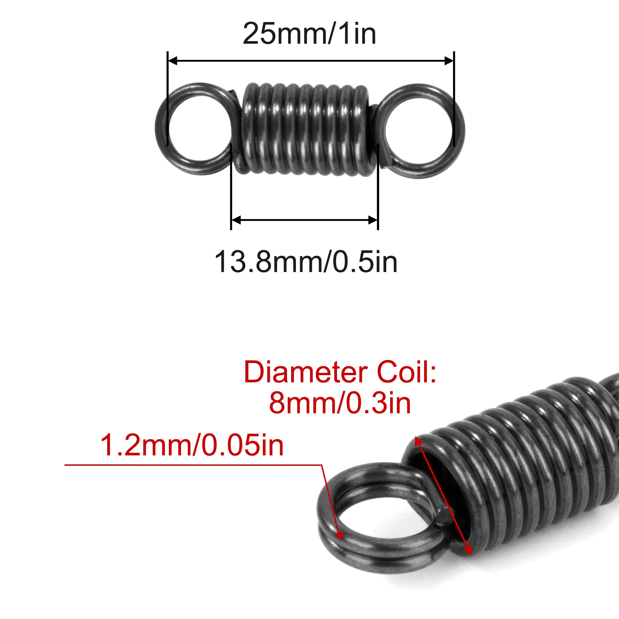 Diese hochwertigen Zugfedern von GUNGY sind echte Alleskönner! Aus robustem Klavierdraht gefertigt, mit einem Drahtdurchmesser von 1,2mm, Außendurchmesser 8mm und einer Länge von 50mm. Die Doppelhaken mit 180-Grad-Winkel und 2 Rundungen sorgen für sicheren Halt. Jede Feder hält bis zu 4,2KG aus und kann um maximal 15,5mm gedehnt werden. Die polierte Oberfläche ist glatt und gratfrei - keine Verletzungsgefahr! Perfekt für Zelte, Trampoline, Spielzeug, Fitnessgeräte oder Auto-Anwendungen. Im Set sind 10 Stück enthalten, also genug für mehrere Projekte. Aus japanischem SWP-Material gefertigt und ROHS-zertifiziert - absolute Qualität!