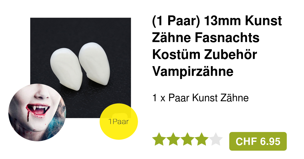 Bereit für die gruseligste Nacht des Jahres? Mit den Ceonam Vampirzähnen wirst du zum echten Blutsauger! Das Set enthält vier Paar künstliche Zähne in zwei Größen (19 mm und 21 mm), hergestellt aus hochwertigem, ungiftigem Harz. Sie sehen täuschend echt aus und sind geschmacksneutral. Mit dem beiliegenden Klebepellet haften die Zähne sicher an deinen eigenen - einfach die Perlen in warmem Wasser erhitzen, auf die Zahnprothese drücken und kurz auf die eigenen Zähne drücken. Die spezielle Verpackung macht die Zähne mehrfach verwendbar. Perfekt für Halloween-Partys, Cosplay-Events oder als Accessoire für Vampir- und Werwolf-Kostüme. Ein Riesenspaß für Kinder und Erwachsene!