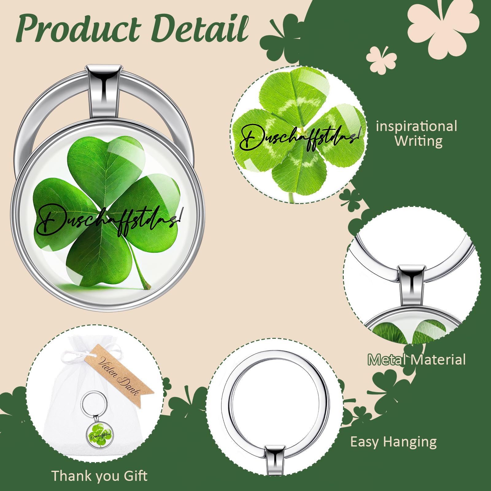 Verschenke Glück und Motivation mit diesem niedlichen Glücksbringer-Set! Das komplett Set beinhaltet eine handgestrickte Kleeblatt-Puppe im Topf, einen vierblättrigen Kleeblatt-Schlüsselanhänger, einen Schutzengel-Anhänger und eine ermutigende Karte. Die süße Puppe hält ein Schild mit der Aufschrift 'AUF INS NÄCHSTE Abenteuer' und bringt damit direkt gute Laune. Der Kleeblatt-Schlüsselanhänger mit der Inschrift 'Neuer Weg, NEUES GLÜCK!' ist ein perfekter täglicher Begleiter. Alles ist liebevoll verpackt und eignet sich super als Aufmerksamkeit für Kollegen, Freunde oder Familienmitglieder. Besonders passend für Jobwechsel, Pensionierungen, Prüfungen oder einfach als kleine Motivation im Alltag. Die Kleeblatt-Puppe misst etwa 15x5 cm und sieht niedlich auf jedem Schreibtisch oder Regal aus. Die Glücksbringer sind nicht nur dekorativ, sondern vermitteln auch positive Botschaften und unterstützen deine Liebsten in neuen Lebensphasen. Ein persönliches und bedeutungsvolles Geschenk, das garantiert Freude bereitet!