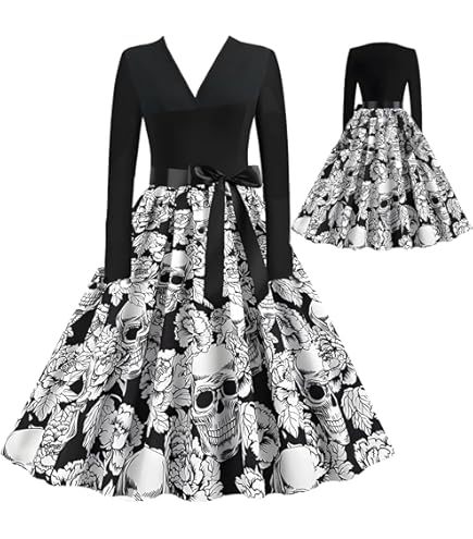 Wow, dieses Halloween-Kleid ist ja mal der absolute Hingucker! Perfekt für die gruseligste Nacht des Jahres - da wirst du garantiert zur besten Hexe auf der Party! \\n\\nDas Swing-Kleid hat diesen total femininen Schnitt, der deine Silhouette super betont. Der V-Ausschnitt ist dezent sexy und die Krawatte an der Taille gibt dem ganzen nochmal diesen besonderen Twist. \\n\\nAus weichem, atmungsaktivem Material fühlst du dich den ganzen Abend super wohl - selbst wenn's mal voll wird in der Disco. Und das Beste: Du kannst zwischen verschiedenen Farben und Stilen wählen! \\n\\nEinfach in der Maschine waschbar und trotzdem bleibt die Farbe knallig. Ob für die Halloween-Party, Kostümfest oder Grusel-Event - mit diesem Kleid machst du garantiert Furore! \\n\\nUnd hey, das Teil ist so vielseitig, dass du es auch nach Halloween noch tragen kannst - einfach die Accessoires weglassen und schon hast du ein total cooles Abendkleid!