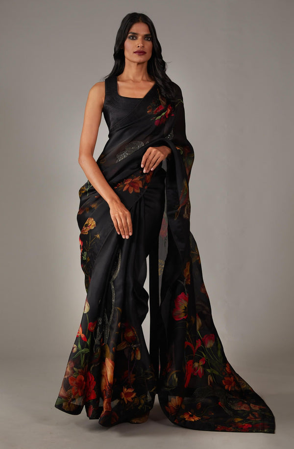Traditioneller Style vom Feinsten! Dieser wunderschöne Sari in Blaugrün/Grau mit goldfarbenem Floral-Foil-Print verleiht dir elegante indische Eleganz. Aus Baumwoll-Mischgewebe gefertigt, ca. 4,5m lang und mit ungenähtem Blusenstoff geliefert. Perfekt für Hochzeiten, Feste, Partys oder besondere Anlässe. Das Zick-Zack-Palav-Muster und die abgeschrägten Kanten geben dem Sari seinen authentischen Charakter. Leichte Handwäsche oder chemische Reinigung empfohlen. Ein echter Hingucker für jede Frau, die traditionelle Kleidung liebt! Komplett mit Blusenstoff - du musst nur noch die passende Bluse nähen lassen.