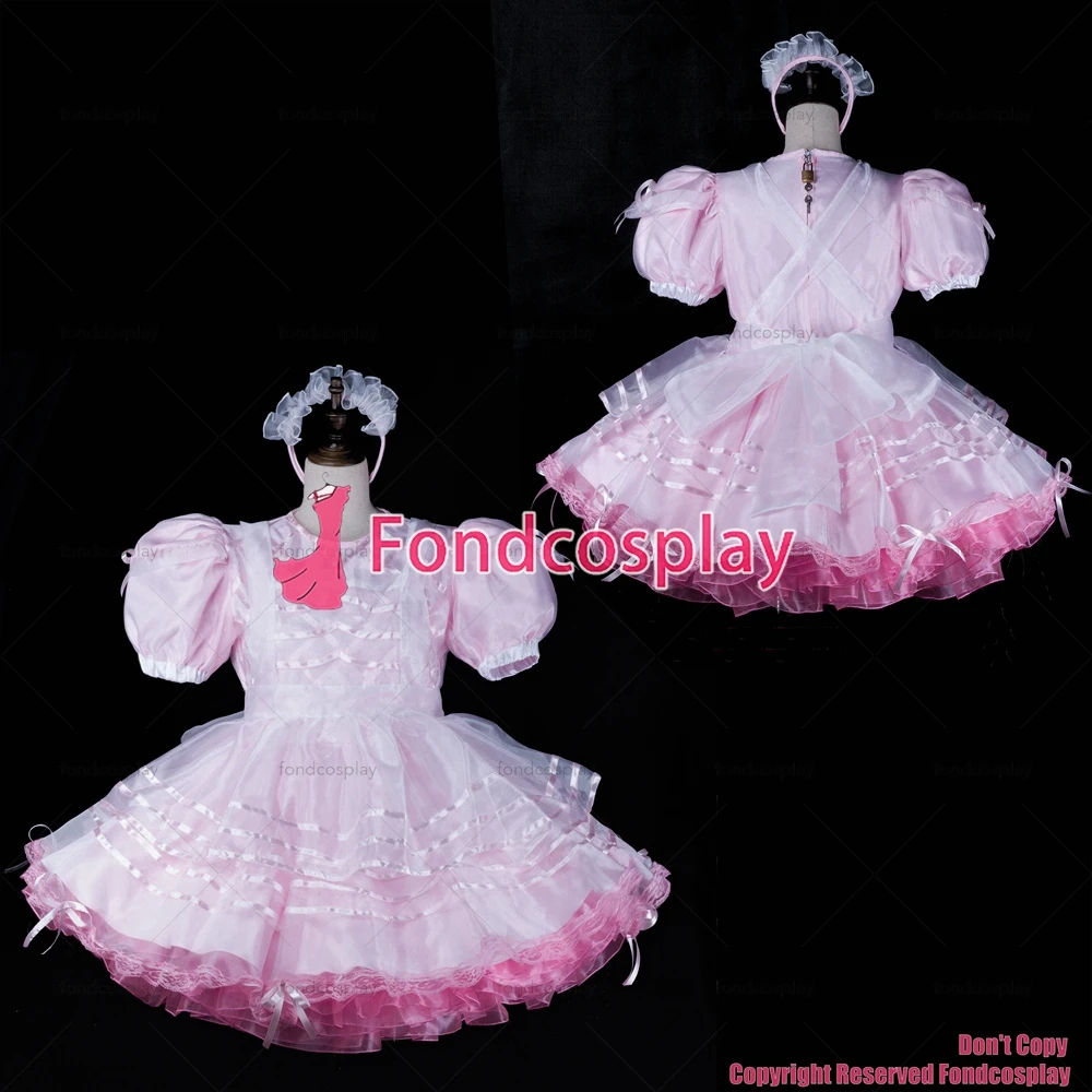 PVC Maid Kleid Rosa - Abschließbar Crossdress Kleid Mit Schürze Lange/Kurze Ärmel