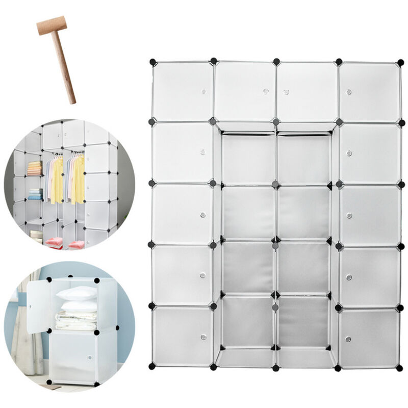Platzwunder für deine vier Wände! Dieser faltbare Kleiderschrank von Froadp bietet mega viel Stauraum auf 178x145x35cm. 20 Fächer à 35x35x35cm - das sind insgesamt 42 Liter pro Fach! Hält bis zu 10kg pro Fach und ist komplett ohne Schrauben aufgebaut. Einfach die Kunststoffschnallen verbinden und fertig. Aus robustem PP-Material - wasserdicht und super pflegeleicht. Perfekt für Kleidung, Schuhe, Spielzeug, Bücher oder Bad-Utensilien. In verschiedenen Farben und Größen erhältlich. Macht in jedem Raum eine gute Figur - ob im Schlafzimmer, Flur oder Bad!