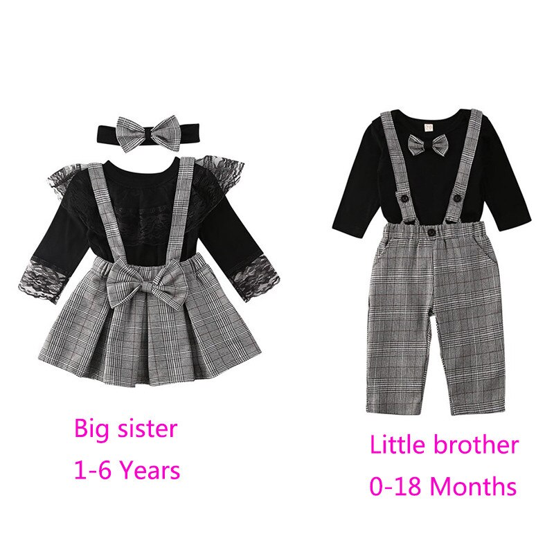 Eqenkely Mädchen Kleidung Set - Puffärmel Top + Karo Rock 2-teilig Herbst/Winter
