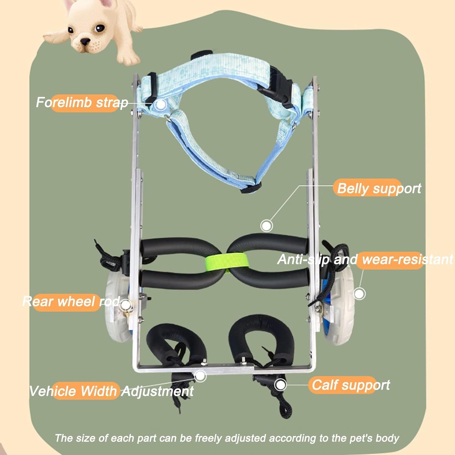 Dein kleiner Liebling hat Probleme mit den Hinterbeinen? Dieser Rollstuhl gibt ihm seine Freiheit zurück! Verstellbar in Höhe, Länge und Breite - passt sich perfekt an Hunde von 2-10kg an. Mit weichen Gurten und Beinschlingen für maximalen Komfort. Die Räder laufen super auf jedem Untergrund. Einfach zusammenzubauen, ohne Werkzeug. Dein Hund kann wieder laufen, spielen und glücklich sein! Auch für Katzen geeignet. Waschbar und leicht zu verstauen. Gib deinem Tier eine zweite Chance - es wird dir danken! Aus stabilem Aluminium, in schickem Blau.