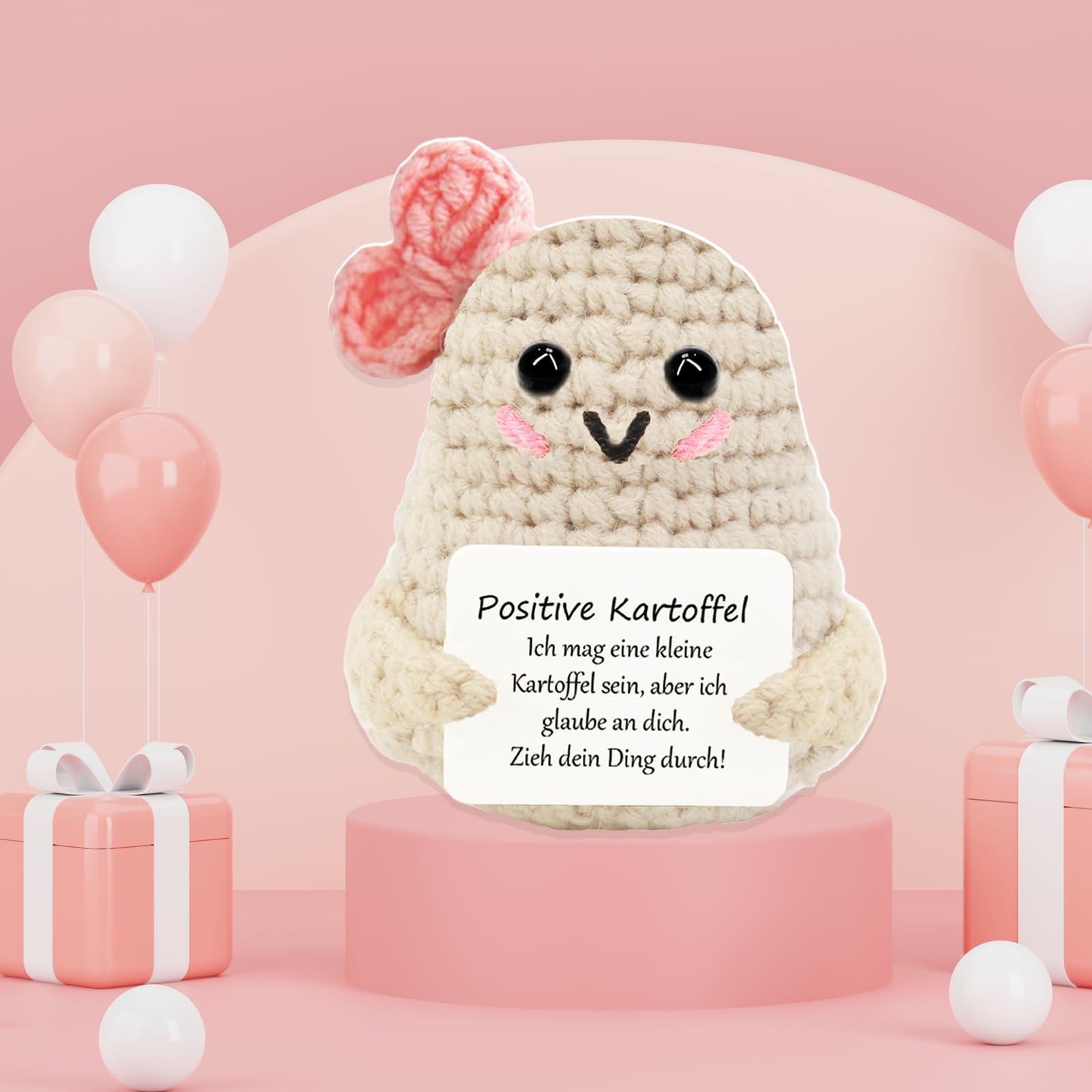 Dieses niedliche handgestrickte Pony ist mehr als nur eine süße Dekoration - es ist ein kleiner Glücksbringer für alle Lebenslagen! Mit seinen 10x8 cm passt es in jede Tasche und kann dich überall hin begleiten. Aus weicher Wolle gefertigt und mit Baumwolle ausgestopft, fühlt es sich super kuschelig an. Die braune Farbe sieht natürlich und gemütlich aus. Aber das Besondere ist die beiliegende Karte mit positiven Botschaften - die gibt dir an schlechten Tagen neuen Mut oder erinnert dich daran, wie besonders du bist! Perfekt also als kleines Geschenk für Freunde, Familie oder Kollegen - ob zur Prüfung, zum Geburtstag oder einfach als Aufmunterung. Das Pony eignet sich aber auch super als Deko für deinen Schreibtisch, das Regal oder das Kinderzimmer. Es bringt sofort gute Laune in jeden Raum! Weil es handgearbeitet ist, hat jedes Exemplar seinen eigenen Charme - kein Pony sieht genau aus wie das andere. Ein emotionaler Begleiter, der nicht nur hübsch aussieht, sondern auch von Herzen kommt. Kleines Geschenk - große Wirkung!