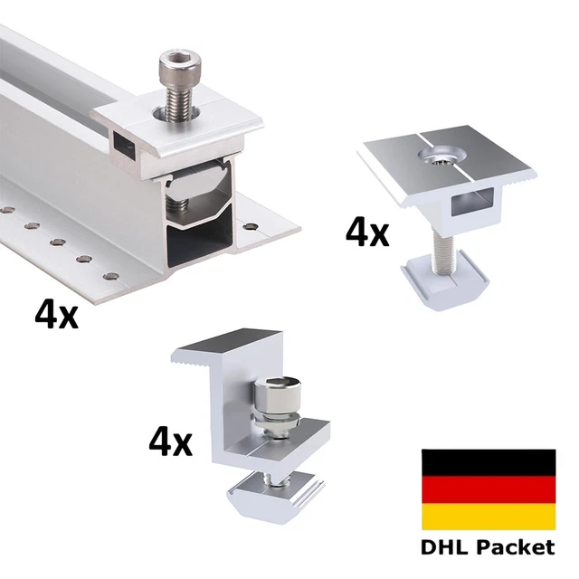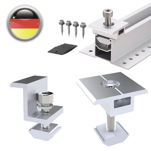 Du planst deine Solaranlage? Mit diesem praktischen Komplett-Set aus robusten Aluminium-Klemmen wird die Montage deiner Solarmodule zum Kinderspiel! Enthalten sind 6 Mittelklemmen und 4 Endklemmen - genau richtig für die Befestigung von 4 kompletten Modulen. Die Klemmen sind speziell für Module mit 35mm Rahmenhöhe entwickelt und halten auch bei extremem Wetter problemlos stand. Kein Verbiegen, kein Brechen - das Aluminium ist korrosionsbeständig und super langlebig. Mit den vorgebohrten Löchern und dem beiliegenden Sechskantschlüssel geht die Installation ratzfatz von der Hand. Egal ob auf dem Hausdach, Flachdach, Boot oder Wohnmobil - diese Klemmen bieten maximale Flexibilität. Die schwarze Farbe sieht dabei noch richtig edel aus. Perfekt also für alle, die ihre Solarpanels sicher und dauerhaft befestigen wollen. Das Set kommt komplett mit allen benötigten Schrauben und Muttern - einfach auspacken und loslegen!