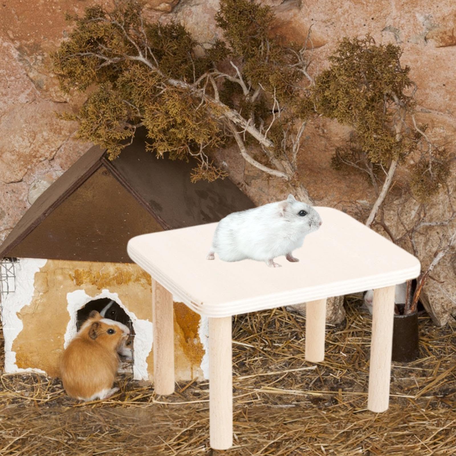 Dein Hamster langweilt sich? Diese Holz-Plattform bringt Action in den Käfig! Zum Klettern, Spielen und Nagen - und nebenbei pflegt dein kleiner Freund auch noch seine Zähne. Aus natürlichem Holz und komplett sicher für dein Tierchen.