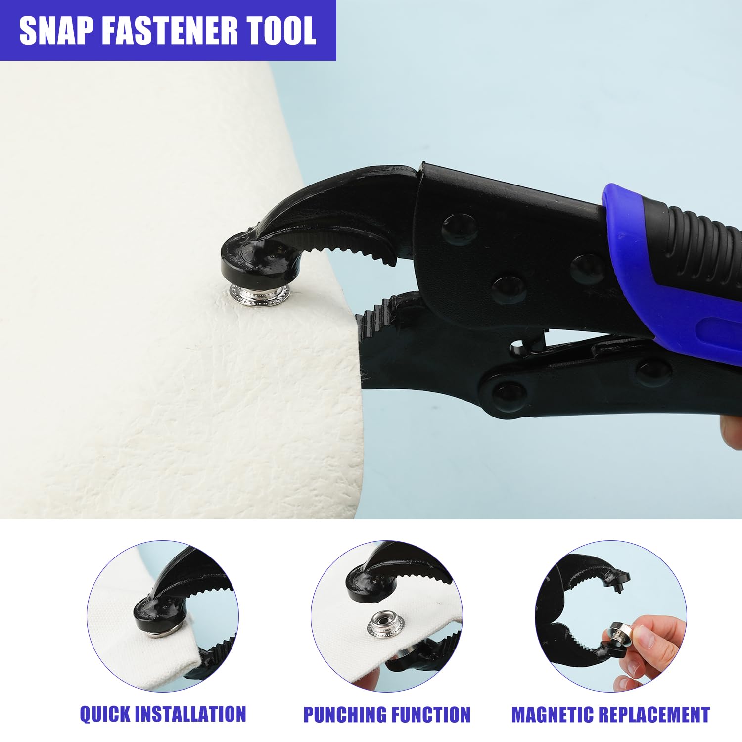 Wow, mit diesem Druckknopf-Set machst du alles fest, was nicht niet- und nagelfest ist! Enthält 1 verstellbare Druckknopfzange, 3 magnetische Matrizen (Amboss & Stanzform), 40 Knöpfe, 40 Buchsen, 20 Bolzen, 20 Ösen und 20 Schraubbuchsen - alles aus robustem Edelstahl und Messing. Die Zange lässt sich easy per Schraube einstellen, hat ne starke Hebelwirkung und stanzt präzise Löcher ohne Stoff zu beschädigen. Perfekt für Jeans, Jacken, Ledertaschen, Bootsplanen, Zelte und mehr. Die magnetischen Matrizen halten alles sicher an Ort und Stelle - kein Verrutschen, mehr Effizienz. Ob für Reparaturen oder DIY-Projekte, dieses Set ist dein bester Kumpel. Einfach drauf los werken und professionelle Ergebnisse erzielen. Hol es dir und werde zum Druckknopf-Profi!