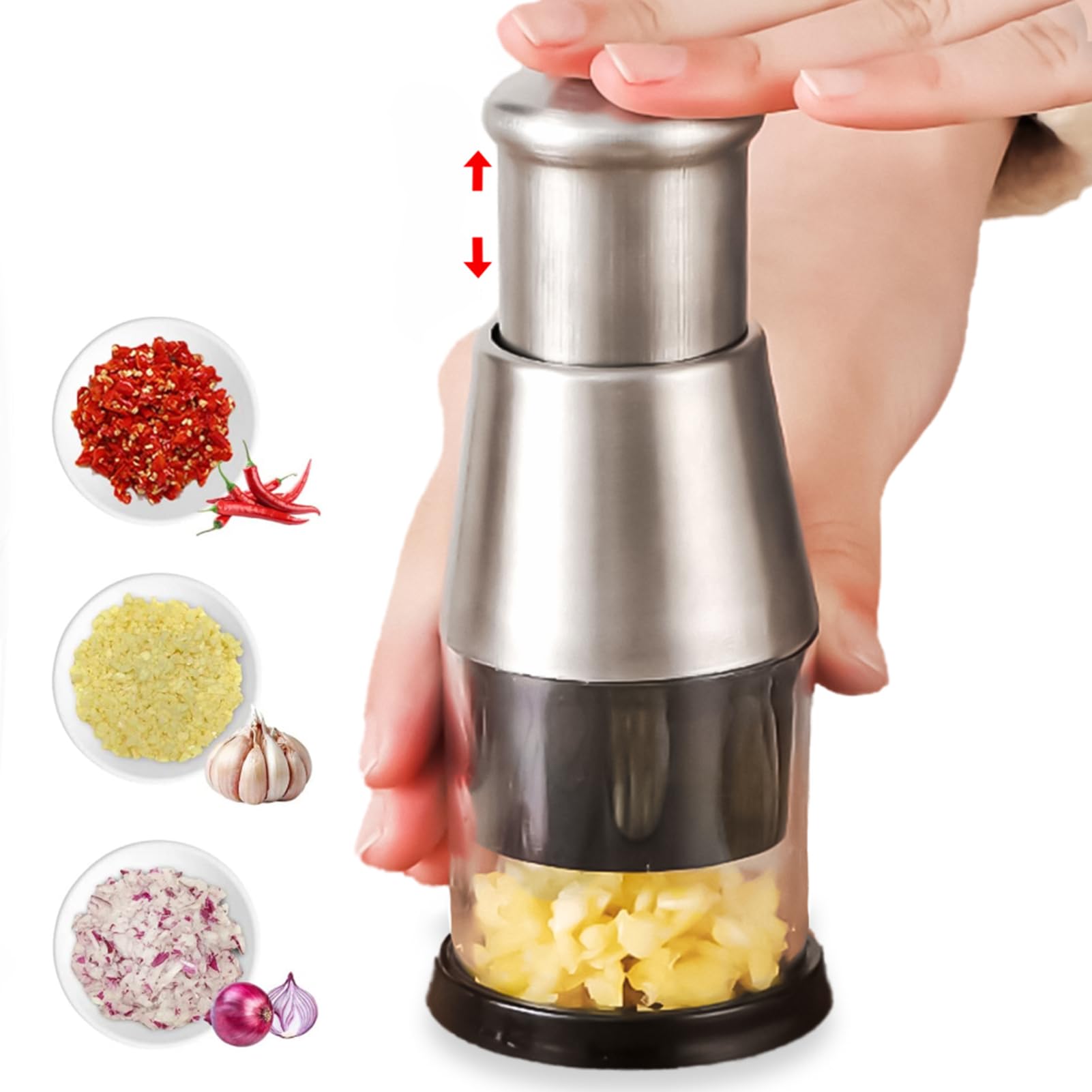 Schluss mit Tränen beim Zwiebelschneiden! Diese Knoblauchpresse aus Edelstahl 304 macht aus harter Arbeit kinderleichte Handarbeit. Einfach Knoblauch, Zwiebeln oder Paprika reinlegen, zudrücken - fertig! Die scharfen Klingen schneiden besser als jedes Messer, und deine Hände bleiben sicher. Maße: 16x5,8cm, also handlich und platzsparend. Aus hochwertigem Material, rostfrei und super einfach zu reinigen - sogar spülmaschinenfest. Perfekt für Salate, Pizzabelag oder asiatische Gerichte. Ein echter Küchenhelfer, der Zeit spart und Nerven schont!