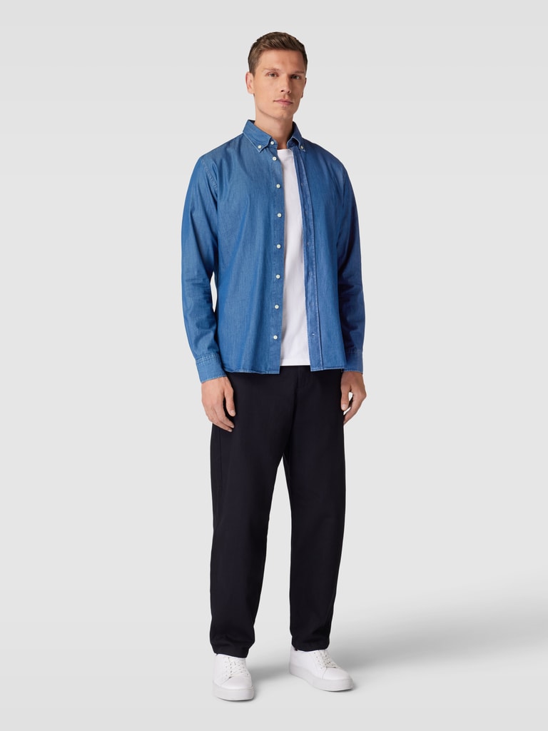 Der leichte Baumwoll-Chambray ist super atmungsaktiv und trägt sich angenehm leicht. Kein steifes, unangenehmes Denim, sondern weich und langlebig. Dieses Hemd ist echt vielseitig - ob alleine getragen oder über einem T-Shirt, es passt immer. Und die Details machen den Unterschied: Knopfleiste vorne, praktische Brusttasche, diese coolen Knöpfe an den Kragenspitzen und die Ärmelmanschetten mit Knopf.