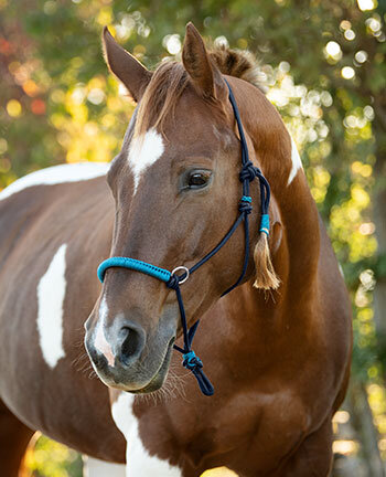 Perfekt für die Bodenarbeit mit deinem Pferd! Dieses farblich abgestimmte Set aus Knotenhalfter und passendem Arbeitsseil ist ein echter Allrounder. Das Halfter aus robustem 8mm PPM-Seil ist am Nasenriemen extra umflochten für besseren Halt. Dazu gibt's ein 4m langes Seil mit Karabinerhaken und schützenden Lederenden. In verschiedenen Größen erhältlich: Shetty, Pony, Cob, Full und XFull - für jedes Pferd das richtige! Wichtig: Nur für Bodenarbeit geeignet, nicht zum Anbinden oder als Stallhalfter! Waschbar bei 30°C - praktisch und pflegeleicht. Verfügbar in blau-grün, blau-pink oder grau-orange. Perfekt fürs Training, zur Gymnastizierung oder einfach für quality time mit deinem Pferd. Einfach in der Handhabung, sicher im Einsatz - so macht Bodenarbeit Spaß! Ein Must-have für jeden Pferdefreund, der Wert auf korrekte Arbeit vom Boden legt!