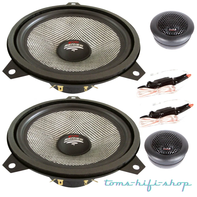 Mit hochwertiger PP-Membran, 13 mm Mylar Hochtönern und kräftigem Ferritmagneten. Einbautiefe nur 47 mm, passt perfekt in die originalen Halterungen. Inklusive stylischen Abdeckgittern.