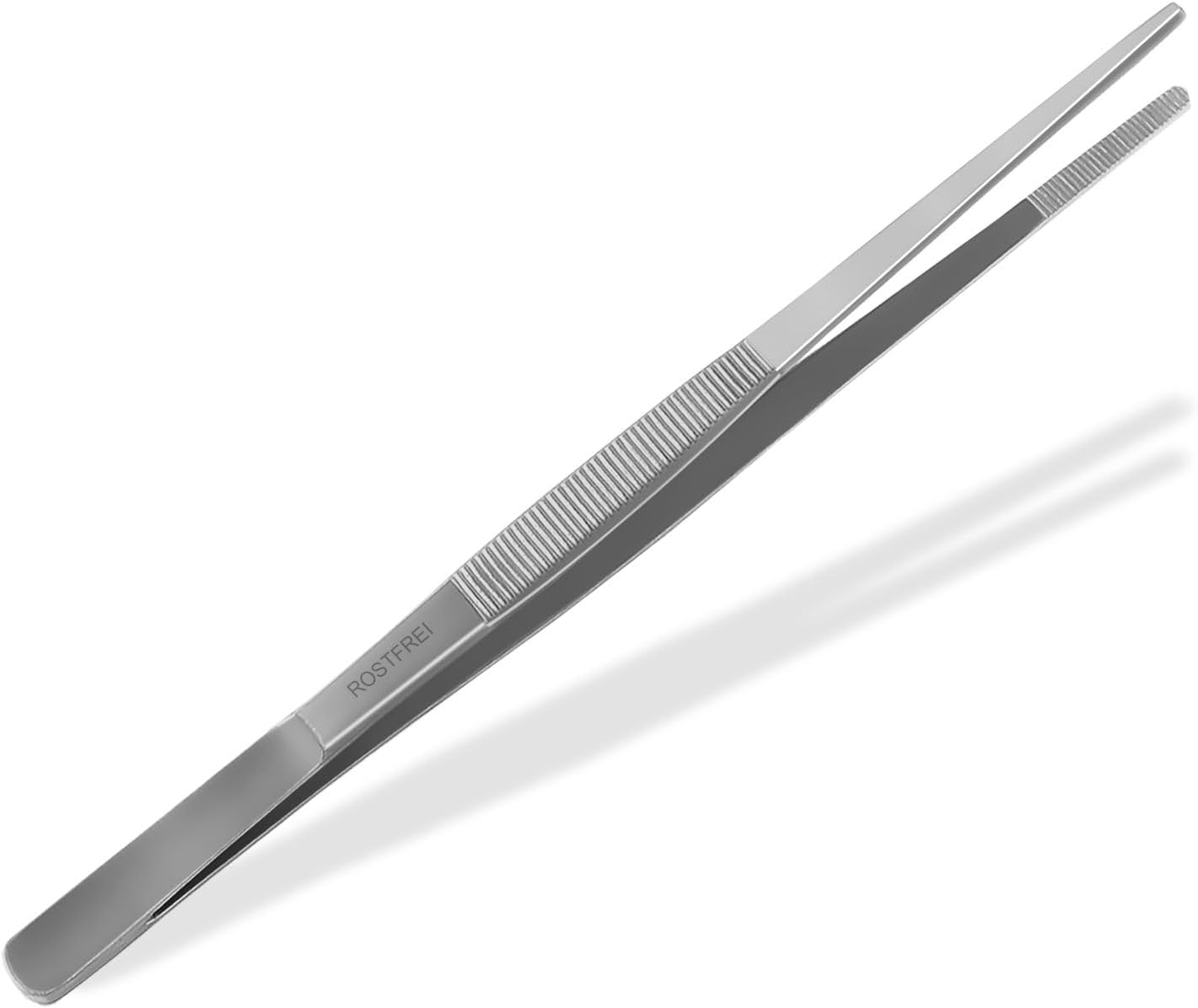 Für alle, die gerne präzise kochen oder grillen: Diese Edelstahl-Kochpinzette ist ein Must-have! Mit 32 cm Länge und einer praktischen Aufhängeöse ist sie immer griffbereit. Die gezackten Spitzen geben sicheren Halt an Steaks, Fisch oder Gemüse – nichts verrutscht mehr! Und selbst mit fettigen Händen liegt die Pinzette dank Anti-Rutsch-Griff sicher in der Hand. Aus robustem, spülmaschinenfestem Edelstahl gefertigt, hält sie jahrelang. Egal ob beim Anrichten, Grillen oder Fondue – mit dieser Pinzette meisterst du jede Küchenherausforderung mit links. Einfach genial!