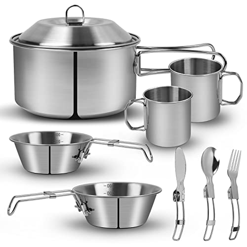 Perfekt ausgestattet für jedes Outdoor-Abenteuer! Dieses 14-teilige Kochset von Breeshy hat alles was du brauchst: Kochtopf (17,5cm), Pfanne (18cm), Teekanne (1,1L), Besteck, Schüsseln, Schneidebrett und mehr! Alles aus robustem Aluminium und Edelstahl - leicht aber super langlebig. Die antihaftbeschichteten Töpfe sind super einfach zu reinigen. Die hitzebeständigen Griffe schützen deine Hände. Und das Beste: Alles packt super platzsparend in der Tragetasche! Nur 946 Gramm leicht - kaum spürbar im Rucksack. Ob Camping, Picknick oder Wandern - mit diesem Set kochst du überall leckere Mahlzeiten!