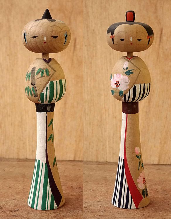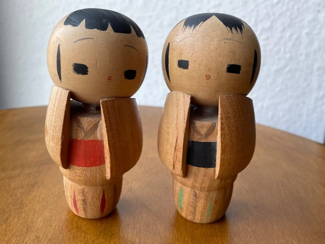 2 Stück Japanische Kokeshi Puppen - Traditionelle Holzfiguren Im Kimono Design