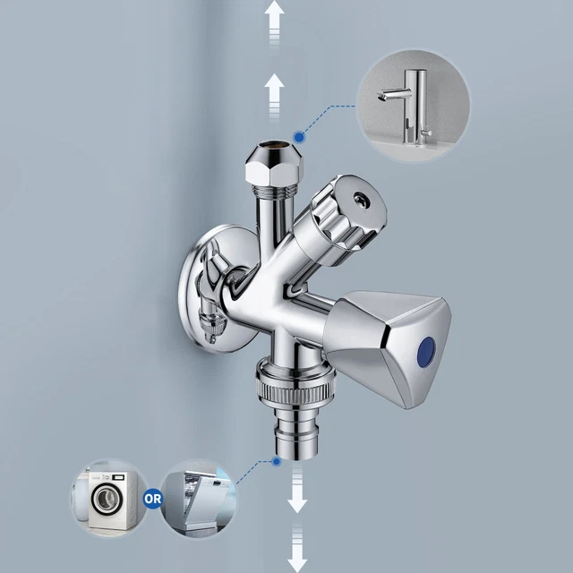 Schon wieder undichte Wasserhähne oder Probleme mit dem Waschmaschinenanschluss? Dieses Kombi-Eckventil ist die All-in-One-Lösung! Mit den Anschlüssen 1/2 x 3/8 x 3/4 Zoll passt es für fast alles: Armaturen, Waschmaschinen, Spülmaschinen - einfach universell! Aus massivem verchromtem Messingguss - richtig stabil und langlebig. Der Dreikanthaubengriff macht das Öffnen und Schließen supereinfach. Das Ventil hält bis zu 10 Bar Druck und 95° C Temperatur aus - also mehr als genug für den Hausgebrauch. Und es hat einen integrierten Filter, der deine Geräte vor Kalk und Schmutz schützt. Komplett mit Wandrosette geliefert - alles da, was du brauchst. Deutsche Standard-Normanschlüsse (G1/2) garantieren passgenauen Einbau. Ob Neubau, Renovierung oder einfach nur Austausch - dieses Eckventil macht dich unabhängig vom Klempner. Einfach einbauen und nie wieder Ärger mit tropfenden Anschlüssen!