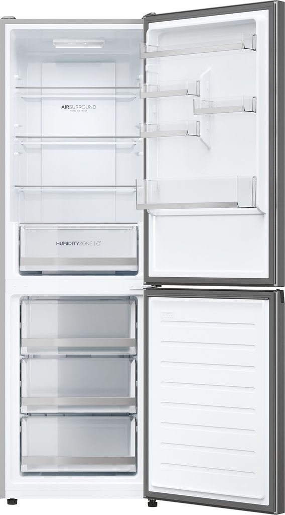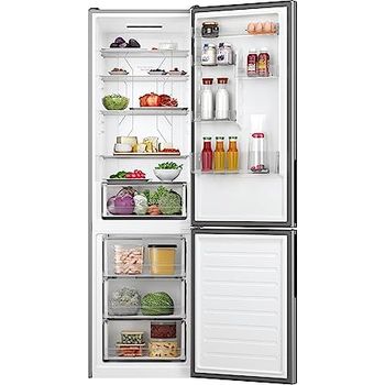 Dein neuer smarter Küchenhelfer ist da! Die Hoover Kühl-Gefrier-Kombination mit Total No Frost Technology - keine lästige Vereisung mehr, immer optimale Temperatur für deine Lebensmittel.\n\nMit der hOn-App und Wifi connect kannst du alles per Smartphone steuern - sogar von unterwegs! Super Cooling und Super Freezing Funktionen sorgen für schnelles Kühlen bzw. Einfrieren wenn's mal nötig ist.\n\nDie Humidity Control Schubladen halten Obst und Gemüse länger frisch, und das Hygiene Gasket reduziert Bakterien und Schimmel. Alles in edlem Edelstahl Look - sieht einfach klasse aus!\n\nEnergieklasse D - sparsam im Verbrauch. Viel Platz innen, clever organisiert. Ob für Single-Haushalt oder Familie - dieser Kühlschrank hat für alle was übrig.\n\nModern, smart und zuverlässig - so soll Küche heute sein! Hol dir die Hoover Kombi und genieß frische Lebensmittel jeden Tag.