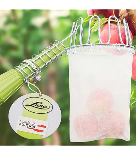 Ernte dein Obst ganz einfach vom Baum - ohne Leiter und ohne dass was runterfällt! Dieser robuste Obstpflücker aus Metall hat einen Durchmesser von 100mm und ist mit schonenden PVC-Kappen an den Zinken ausgestattet, damit das Obst nicht beschädigt wird. Der praktische Leinenbeutel (250x190mm) fängt alles sicher auf. Mit der konischen Dülle passt er auf die meisten Stangen. Super stabil und langlebig - damit holst du Äpfel, Birnen und anderes Obst mühelos und schonend vom Baum. Ein Muss für jeden Gartenbesitzer!