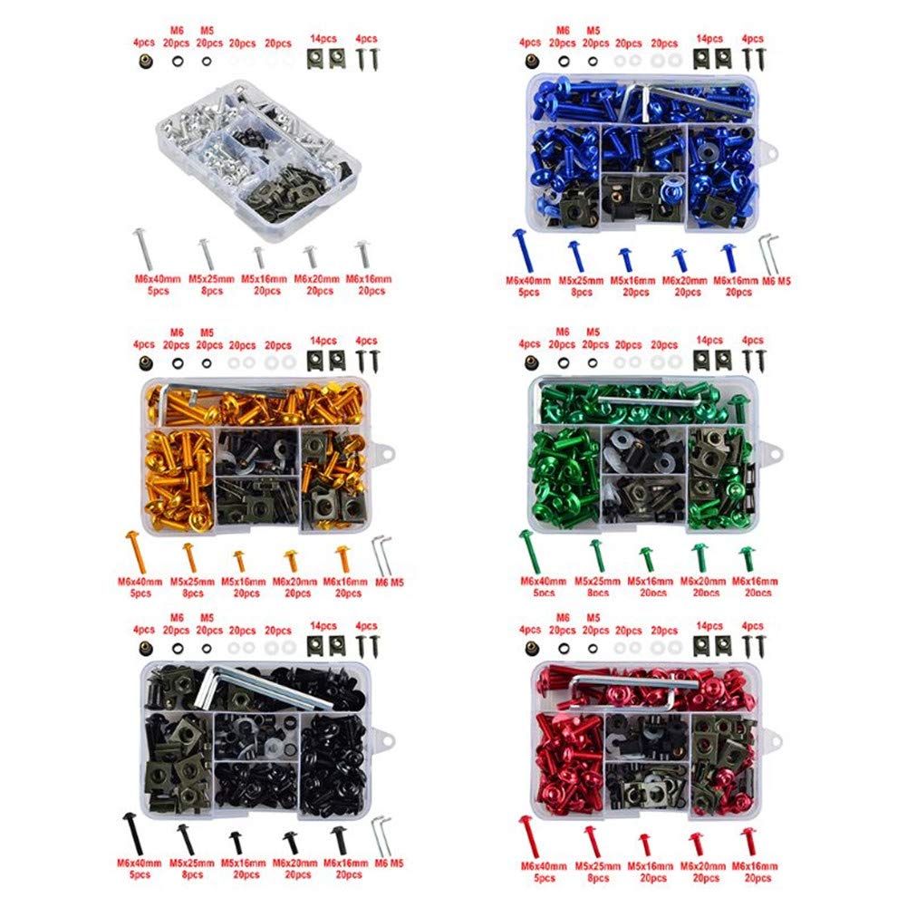 Nie wieder nach passenden Schrauben suchen! Dieses 177-teilige Set hat wirklich alles, was du für dein Motorrad brauchst. Enthalten sind M6 und M5 Schrauben in verschiedenen Längen, Unterlegscheiben, Kunststoffpfosten und sogar Spezial-Clips. Perfekt für Verkleidungen, Windschutzscheiben und Karosserieteile. Aus hochwertigem Aluminium gefertigt - rostfrei und super stabil. Passt für die meisten Sportmotorräder von Honda, Kawasaki, Suzuki und anderen bekannten Marken. Die blaue Farbe gibt dem Bike noch einen extra Style-Punkt! Alles in einer praktischen Aufbewahrungsbox, damit nichts verloren geht. Ein Muss für jede Motorrad-Werkstatt - ob für Reparaturen oder Tuning.