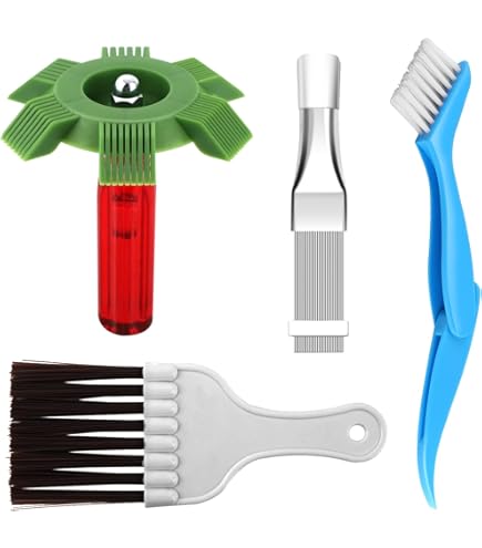 Pflege deine Klimaanlage und spare Energie! Dieses 2-teilige Reinigungsset macht die Wartung super einfach. Der Lamellenkamm aus rostfreiem Stahl (150mm) richtet verbogene Lamellen wieder gerade. Die Reinigungsbürste (175mm) entfernt Staub und Schmutz effektiv. Einfach den Kamm durch die Lamellen ziehen - schon sind sie wieder in Form! Verbesserte Luftzirkulation = bessere Kühlleistung und weniger Stromverbrauch! Perfekt für Klimaanlagen, Wärmepumpentrockner und Kühlschränke. Rostfreier Stahl ist langlebiger als Plastik - hält ewig! Einstellbar für verschiedene Lamellenabstände. Macht Wartungskosten überflüssig - erledige es einfach selbst! Einfach bestellen und deine Geräte effizienter machen! Deine Klimaanlage wird's dir mit besserer Leistung danken - probier's aus!