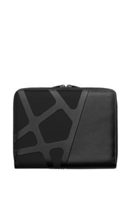 Business meets Style! Diese Hugo Boss Konferenzmappe ist der absolute Hingucker in jedem Meeting. Im eleganten Fischgrät-Design (Herringbone) - genau wie die berühmten Anzüge der Marke - macht sie sofort was her. Aus hochwertigem schwarzem Kunstleder fühlt sie sich nicht nur edel an, sondern ist auch noch super praktisch. Mit den Maßen 31,5x24x2cm passt perfekt alles rein: A4-Unterlagen, Notizen, sogar dein Tablet. Das markante HUGO BOSS Logo in verchromten Metallbuchstaben zeigt, dass du Wert auf Qualität legst. Und damit auch nichts verloren geht: Ein umlaufender Reißverschluss hält alles sicher verschlossen. Ob beim Kunden, in der Konferenz oder im Vorstandssitzung - mit dieser Mappe bist du immer bestens ausgestattet und siehst dabei noch richtig gut aus. Ein Accessoire, das einfach passt!