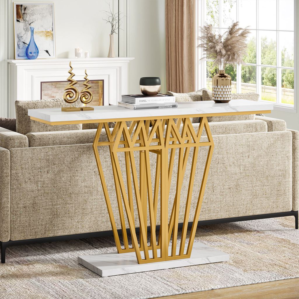 Dieser Tribesigns Konsolentisch bringt modernen Flair in dein Zuhause! Mit 101cm Länge und 30cm Tiefe ist er der perfekte Begleiter für Flur, Wohnzimmer oder Eingangsbereich. Die Tischplatte aus hochwertigem Kunstmarmor ist 4cm dick, kratzfest, wasserdicht und super leicht zu reinigen. Der auffällige geometrische Sockel in Wellenform ist ein echter Hingucker und verleiht dem Tisch seinen besonderen Charakter. Mit einer Tragkraft von 81,6kg kannst du getrost Vasen, Bücher, Deko-Artikel oder sogar eine kleine Lampe darauf platzieren. Die Gummifüße schützen deine Böden vor Kratzern. Die Montage ist super einfach - in nur 20 Minuten ist der Tisch aufgebaut und einsatzbereit. Ob hinter dem Sofa, im Flur oder als Akzenttisch im Schlafzimmer - dieses vielseitige Möbelstück macht überall eine gute Figur und bringt Stil in deine vier Wände!