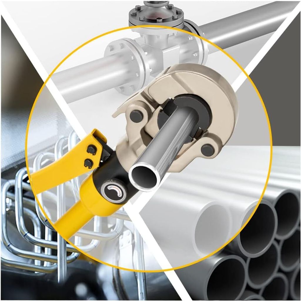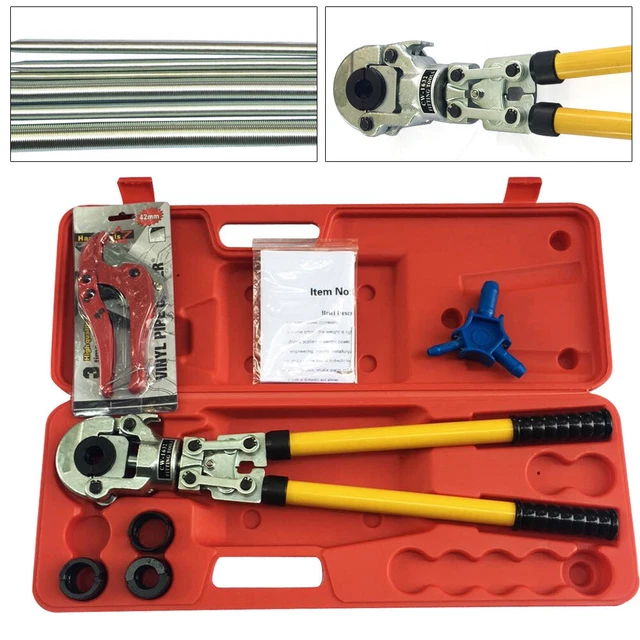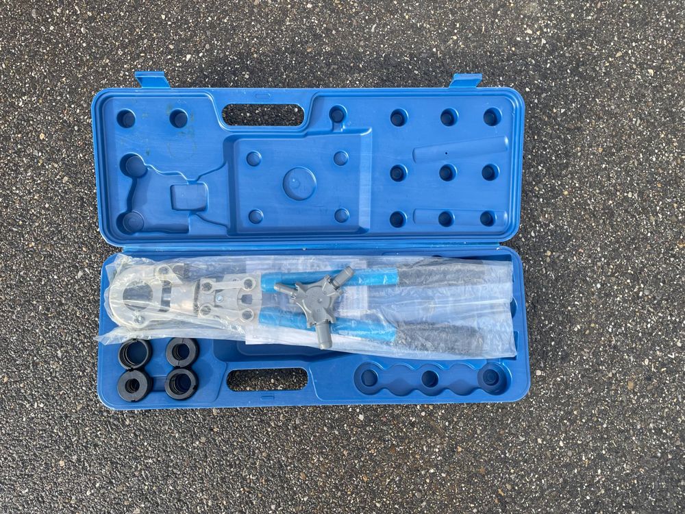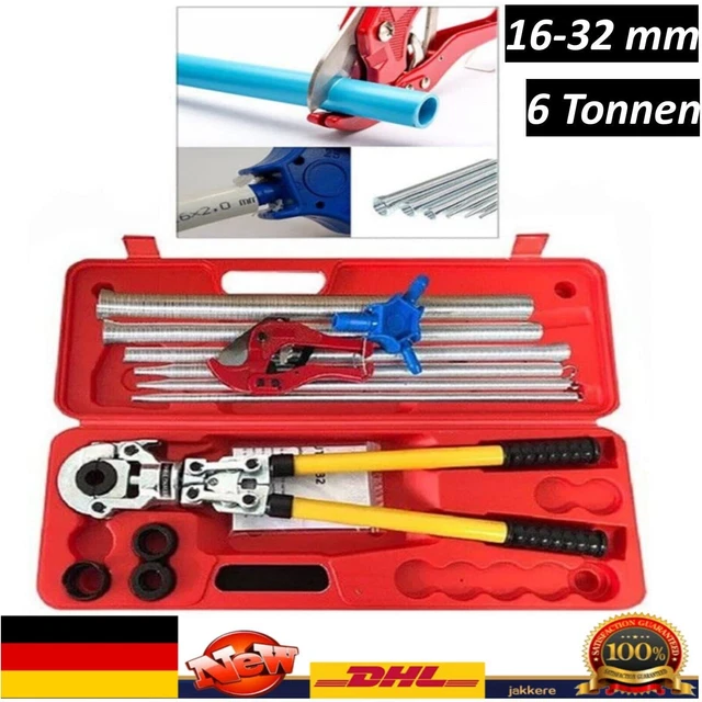 Hey Profi, diese manuelle Presszange ist ein echter Alleskönner für deine Rohrinstallationen! Das komplette Set enthält 8 verschiedene Matrizen für U-Typ (16, 20, 25, 32mm) und TH-Typ (16, 20, 26, 32mm) - perfekt für Alu-Kunststoff-, Kunststoff-, PB- und PEX-Rohre. Mit einer beeindruckenden Presskraft von 10 Tonnen (22046,23 lbs) und einem Hub von 20mm bekommst du damit jede Verbindung sicher und professionell verpresst. Die Zange besteht aus robustem Stahl und Aluminium mit galvanisierter und geschwärzter Oberfläche - absolut rostfrei und langlebig. Das ergonomische Design mit rutschfesten Griffen liegt super in der Hand und der Schnellverschlussmechanismus macht das Wechseln der Matrizen zum Kinderspiel. Im praktischen Tragekoffer mit englischer Bedienungsanleitung ist alles sicher verstaut und immer griffbereit. Ob für Heizungsinstallation, Sanitär oder Klima - mit dieser Presszange bist du bestens ausgerüstet!