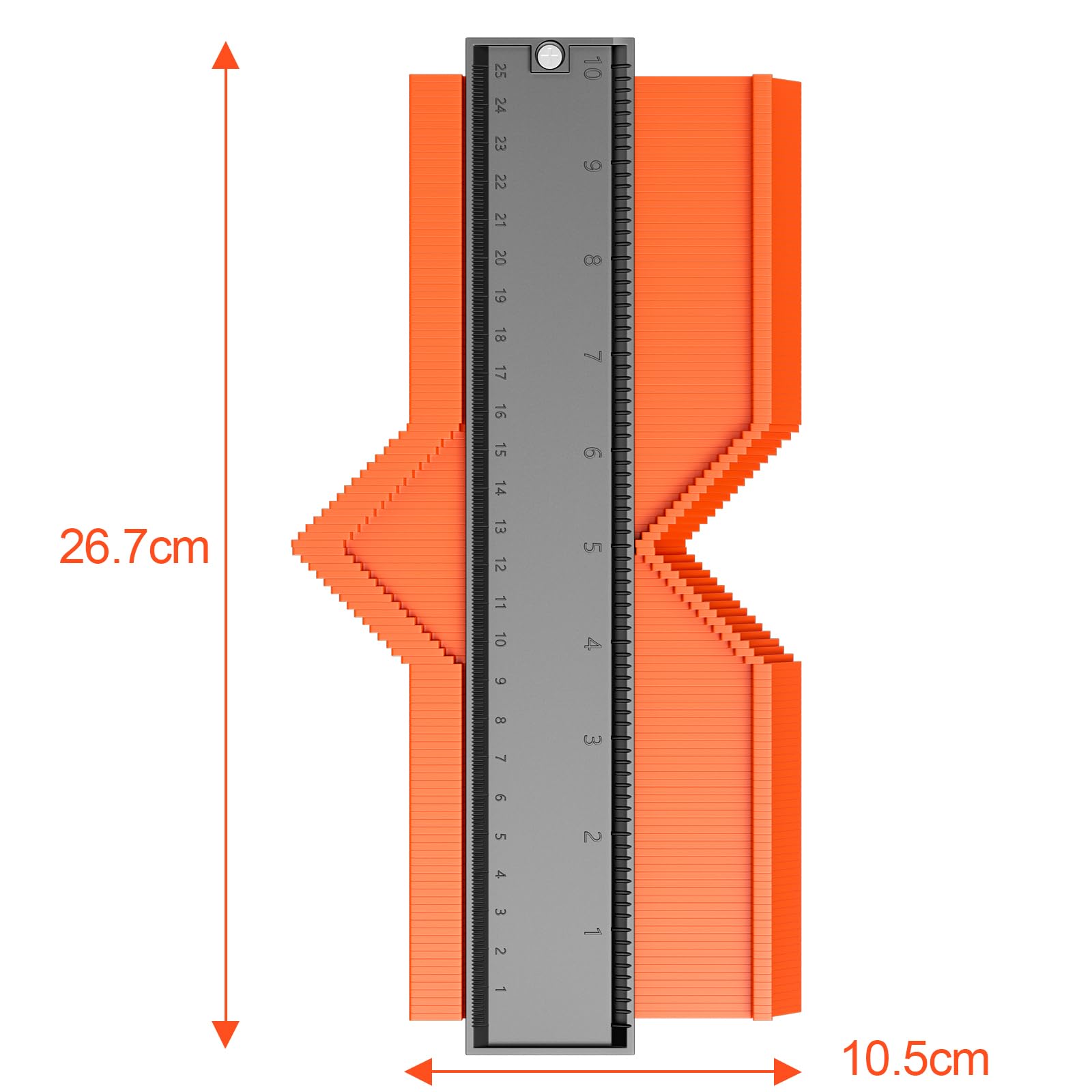 Alter, dieses Teil ist genial! Die Riloventa Konturenlehre in knalligem Orange ist ein echter Game-Changer für alle Heimwerker. Damit kannst du super einfach komplizierte Formen und Konturen abnehmen - ob bei Laminat, Fliesen, Holz oder anderen Materialien. Die Lehre ist aus robustem Metall und ABS-Kunststoff gefertigt und hält daher einiges aus. Das coole Feature: Auf beiden Seiten sind Skalen angebracht, sowohl in Zentimetern als auch in Zoll. So kannst du nicht nur die Form, sondern auch gleich die genauen Maße ablesen. Die Bedienung couldn't be easier: Einfach die Profilierzähne gegen das Objekt drücken, schon hast du die exakte Form. Mit 26,7 cm Länge und 10,5 cm Breite ist sie handlich und passt in jeden Werkzeugkoffer. Ob für den Profi auf der Baustelle oder den Hobby-Heimwerker daheim - dieses Tool erleichtert die Arbeit ungemein. Nie wieder kompliziertes Anzeichnen und Messen!