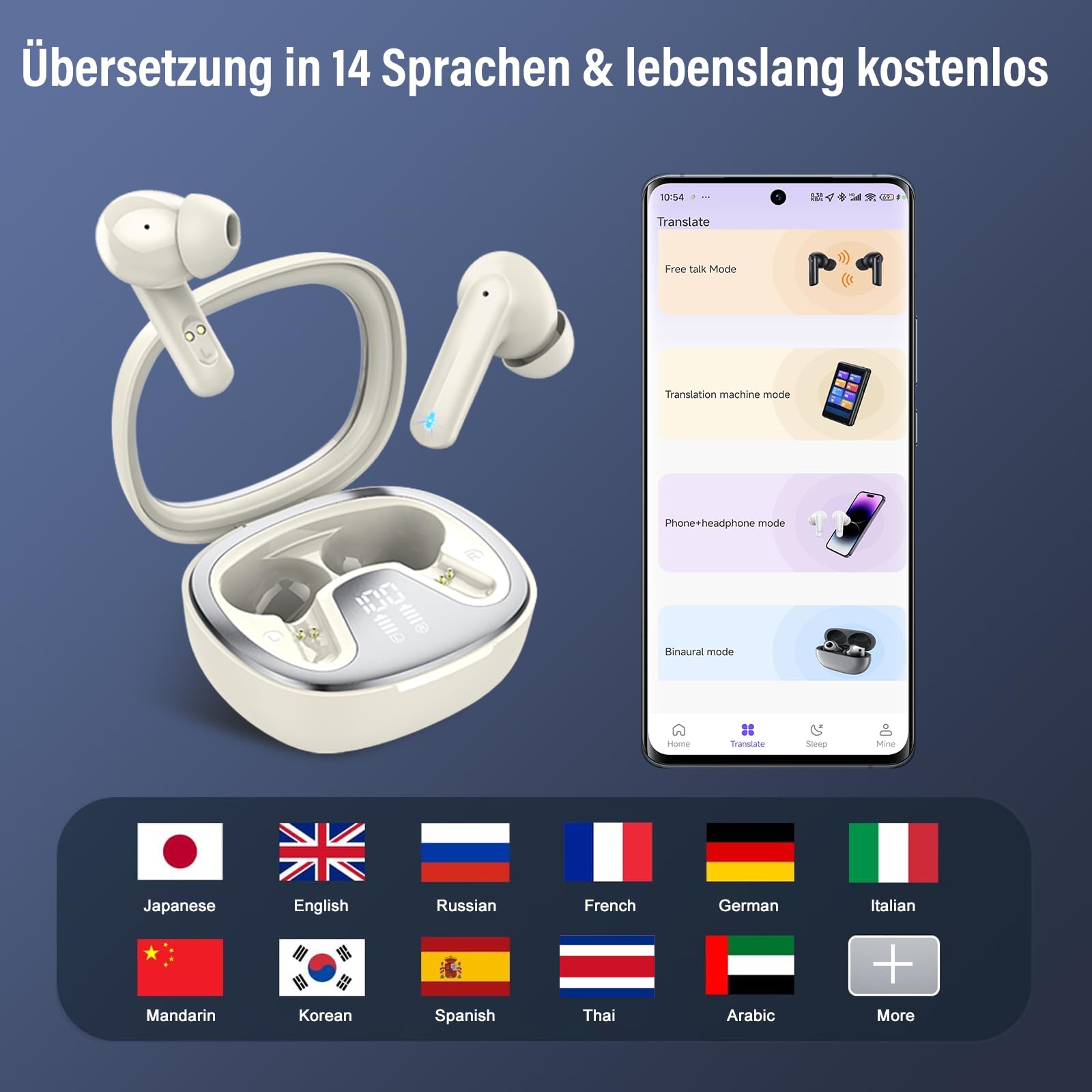 Sprachbarrieren? Vergiss sie einfach! Diese genialen AI-Übersetzer-Kopfhörer übersetzen in Echtzeit zwischen 164 Sprachen - und das in nur 0,5 Sekunden! Perfekt für Reisen, Geschäftstermine oder wenn du einfach mal was in einer anderen Sprache verstehen willst. Mit Bluetooth 5.4 und 5 verschiedenen Übersetzungsmodi: Freisprechen, Headset, Lautsprecher, Kamera für Text und Sprachnachrichten. Der Akku hält bis zu 8 Stunden pro Ohrhörer und mit dem Ladecase sogar 48 Stunden! Nach nur 15 Minuten laden hast du schon 2 Stunden Power. Die 4 ENC-Mikrofone filtern Umgebungsgeräusche raus, sodass du immer klar verstanden wirst. Bequemes 45°-In-Ear-Design mit 3 Ohrstöpsel-Größen - sitzt perfekt und tut nicht weh. Einfach per App einrichten und los geht's mit der weltweiten Verständigung!