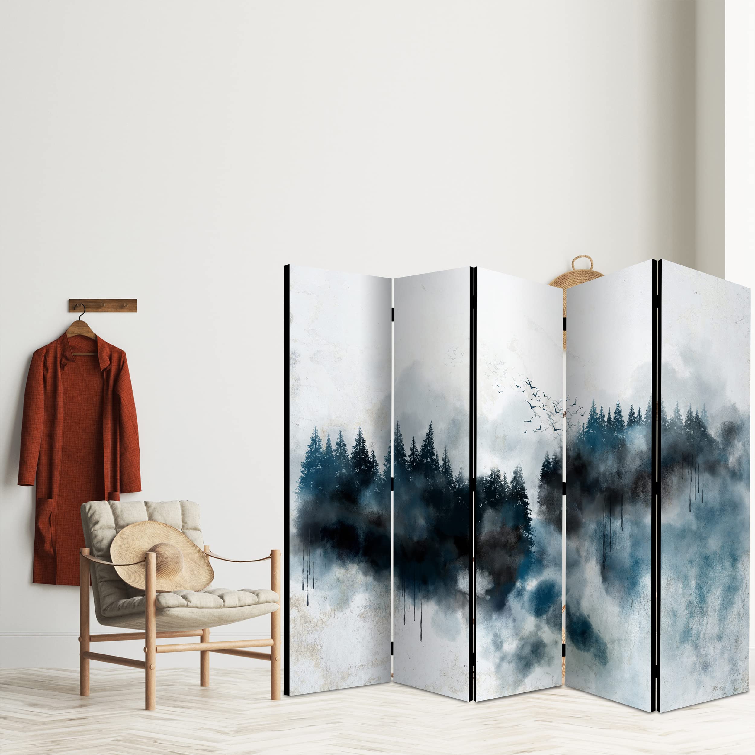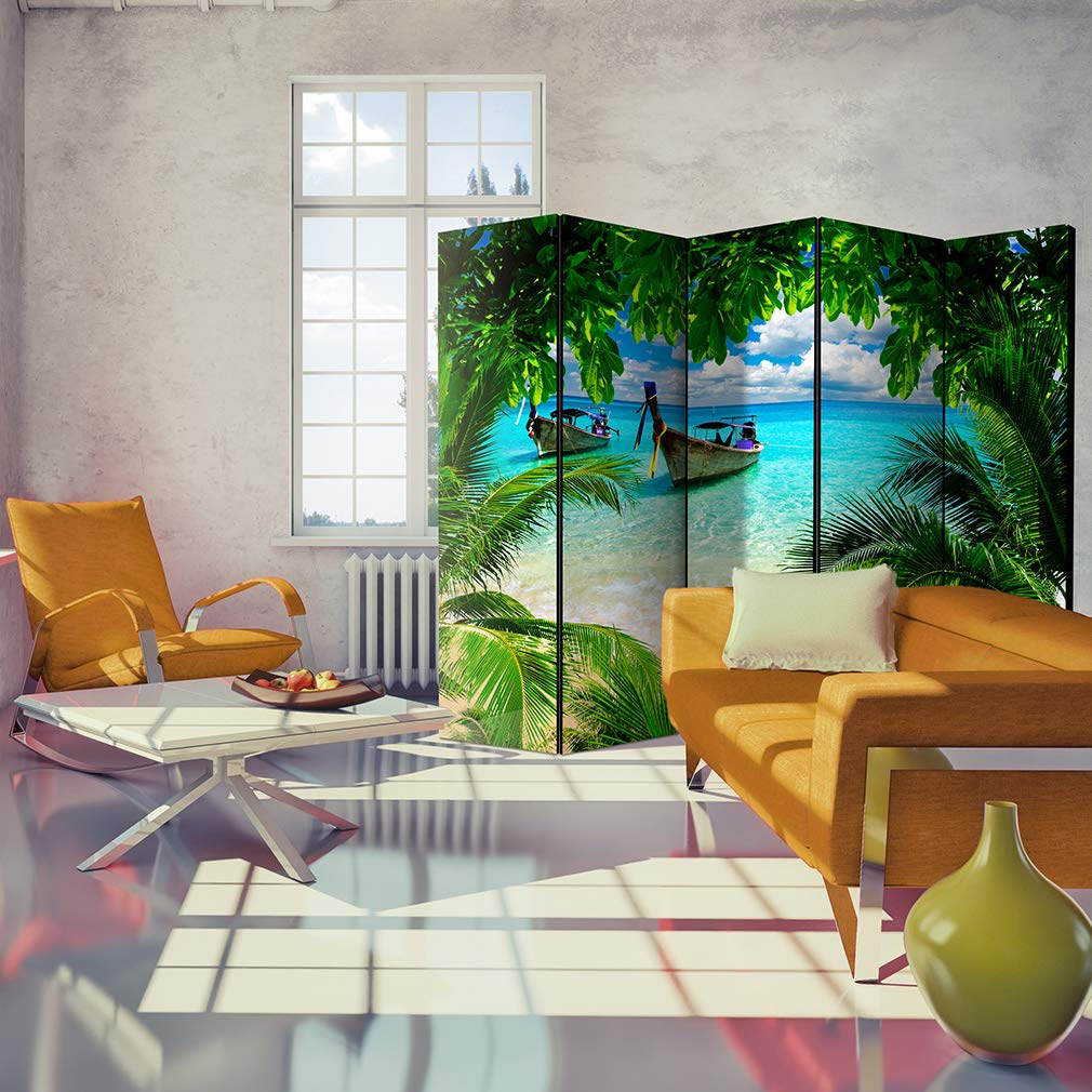 Trenne deine Räume stylisch! Dieser decomonkey Paravent mit wunderschönem Korallenriff-Motiv ist beidseitig bedruckt. Mit 225x172cm Größe und 5 Flügeln aus stabilem Holz. Einfach aufzuklappen und zu verschieben. Perfekt als Sichtschutz für Wohnzimmer oder Büro. Die textile Haptik und edlen Scharniere machen ihn zum echten Hingucker. Sofort einsatzbereit - keine Montage nötig!