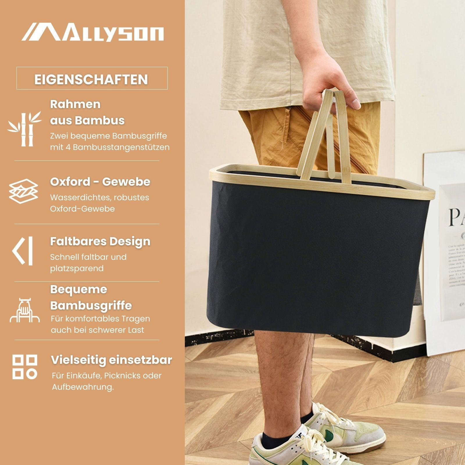 Das wasserabweisende Material schützt deine Einkäufe vor Regen. Ob auf dem Markt, im Supermarkt oder beim Picknick - dieser Korb ist immer dabei.