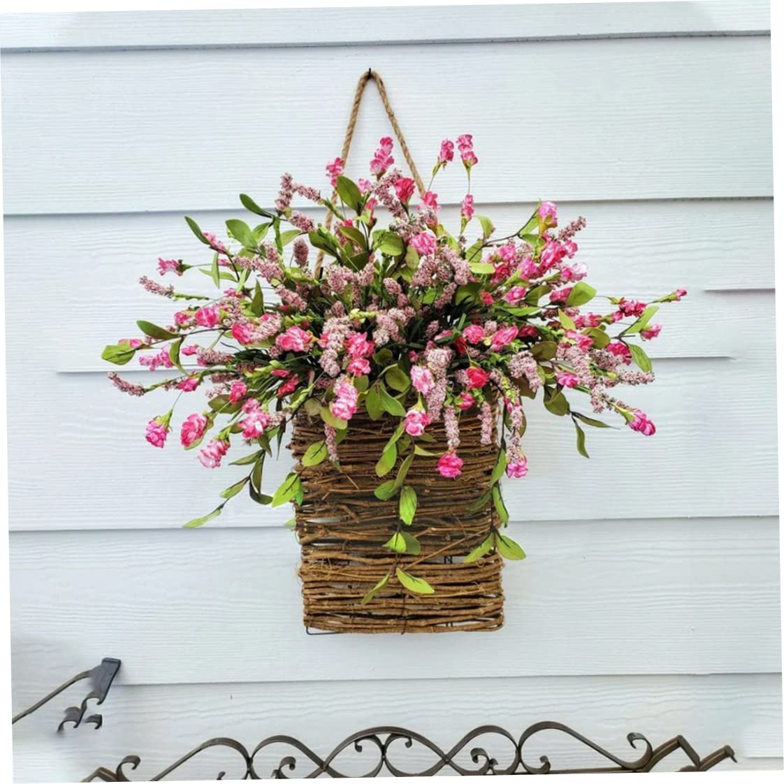 Wow, was für ein hübscher Kranz! Dieser hängende Korbkranz mit rosa Wildblumen und Beeren bringt sofort Frühlingsstimmung an deine Haustür. Maße von 40x25cm - nicht zu groß, nicht zu klein, einfach perfekt!\n\nAus natürlichem Rattan und seidenen Blüten gefertigt, sieht er täuschend echt aus. Der Korb-Stil verleiht ihm diesen charmanten, ländlichen Look, der zu vielen Einrichtungsstilen passt.\n\nNicht nur für die Haustür super - auch im Flur, Wohnzimmer oder als Tischdekoration macht er eine tolle Figur. Perfekt für Frühling und Sommer, aber eigentlich zu jeder Jahreszeit ein Hingucker!\n\nSuper als Geschenk für Freunde, Nachbarn oder Familie. Oder einfach für dich selbst - weil man sich doch ab und zu mal was Schönes gönnen darf, oder?\n\nEinfach aufhängen und schon fühlt sich dein Zuhause gleich viel einladender und fröhlicher an. Deine Gäste werden begeistert sein!