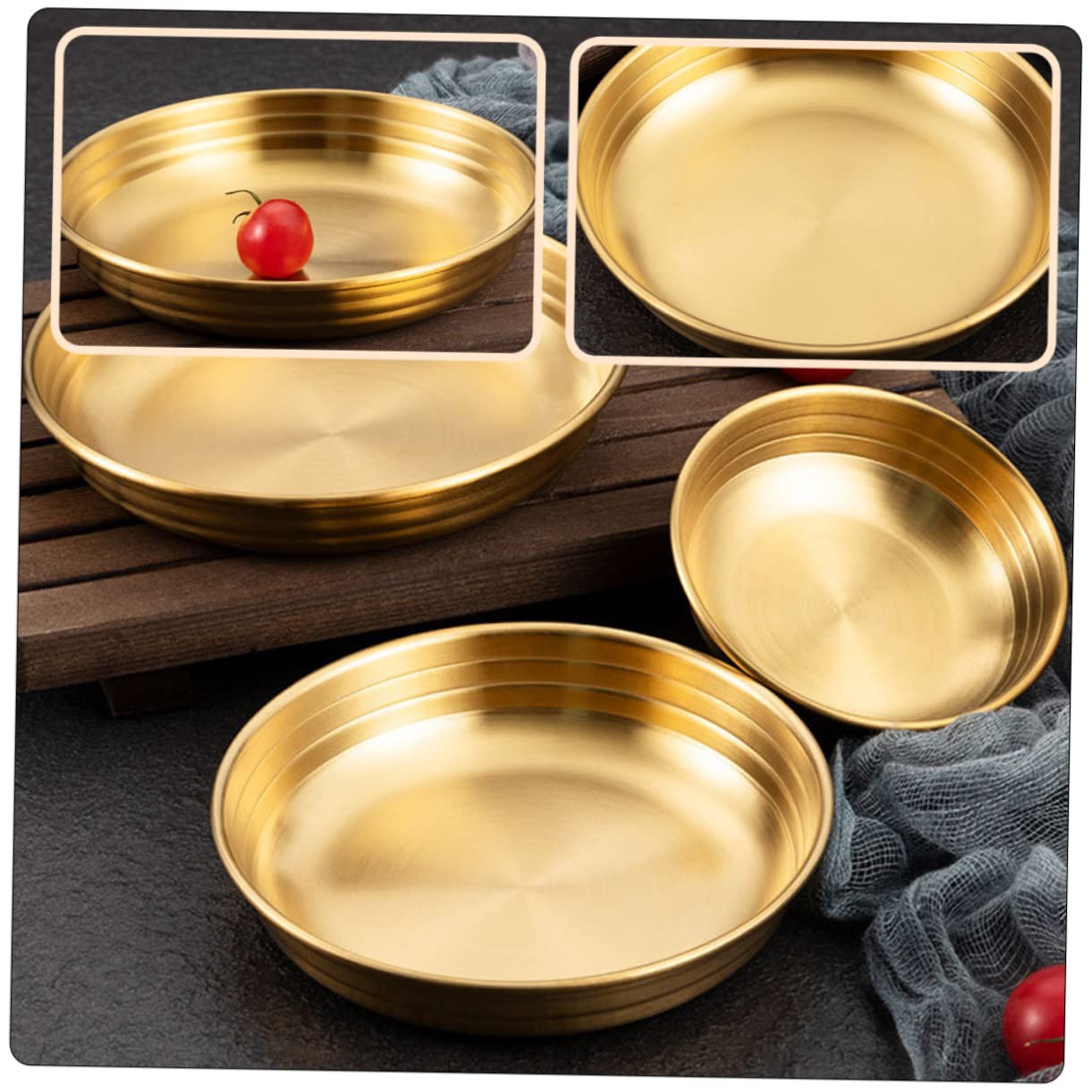 Stylische koreanische Gewürzplatte aus hochwertigem Edelstahl! Mit 12,5x12,5x2,5cm perfekt für Sojasauce, Kimchi, Dips und Vorspeisen. Das lebensmittelechte Material ist absolut unbedenklich und super einfach zu reinigen. Die golden schimmernde Oberfläche und die glatten Kanten sehen nicht nur toll aus, sondern kratzen auch nicht an Händen oder Tischoberflächen. Leicht und praktisch - ideal für die asiatische Küche oder als elegante Servierplatte. Ob für Sushi-Abende, Korean BBQ oder einfach nur als dekorative Schale in der Küche - dieses Teil macht immer was her! Einfach abwaschen und trocknen - fertig.