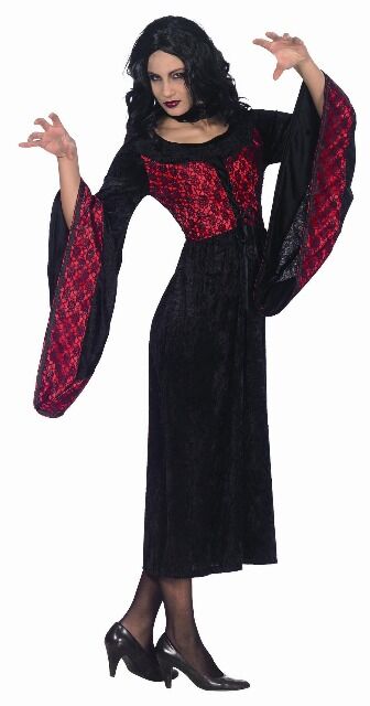 Bereit für eine mystische Verwandlung? Dieses Gothic-Kleid verwandelt dich in eine elegante Vampir-Dame! Mit dabei sind eine schwarze Maske, Socken und eine Halskette - alles für den perfekten mittelalterlichen Look.