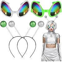 Werde zum echten Alien mit diesem kompletten Kostüm-Set! Enthalten: Verstellbarer Antennen-Harreif mit glitzernden Federkugeln, coole Alien-Brille mit bunten Gläsern, metallische Handschuhe und holographischer Glitter. Alles aus bequemen Materialien - das Stirnband passt sich jeder Kopfgröße an, die Handschuhe sind dehnbar. Perfekt für Halloween-Partys, Karneval, Weltraum-Cosplay oder Alien-Themen-Events. Stehst du auf der Bühne oder feierst du mit Freunden - mit diesem Set bist du der Star der Galaxie! Auch ein super Geschenk für Cosplay-Fans.