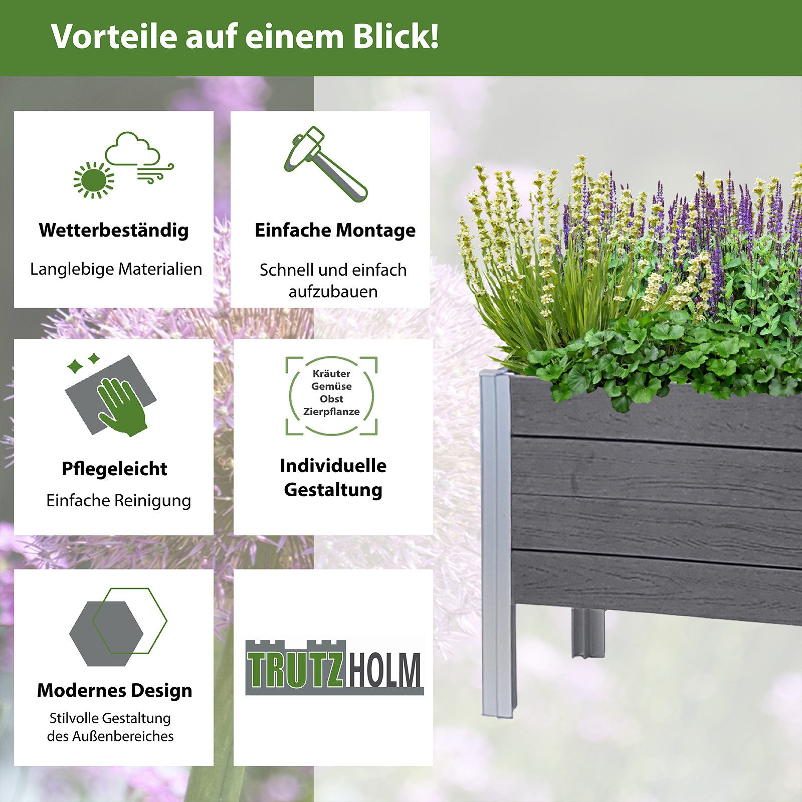 Boah, dieses Hochbeet ist ja mal richtig praktisch! Mit den vier Rollen kannst du es einfach überall hinschieben - zwei davon haben sogar Feststellbremsen, damit es nicht wegrollt. Die Maße von 80x30x68cm sind perfekt für jeden Balkon oder Garten. Das coole: Es besteht aus drei stapelbaren Modulen aus Naturholz mit schwarzer Lasur, die du auch einzeln als Pflanzgefäße nutzen kannst. Unten ist noch ein praktischer Stauraum für dein Gartenwerkzeug. Die feuerverzinkten Scharniere machen das Ganze super stabil und der Aufbau ist echt easy. Egal ob du Kräuter, Blumen oder Gemüse anpflanzen willst - damit hast du immer frische Zutaten direkt vor der Tür! Und das Design ist total zeitlos und passt in jeden Garten oder auf jeden Balkon. Einfach befüllen, anpflanzen und schon hast du deine eigene kleine grüne Oase! Perfekt für alle, die nicht ständig bücken wollen oder nur wenig Platz haben.