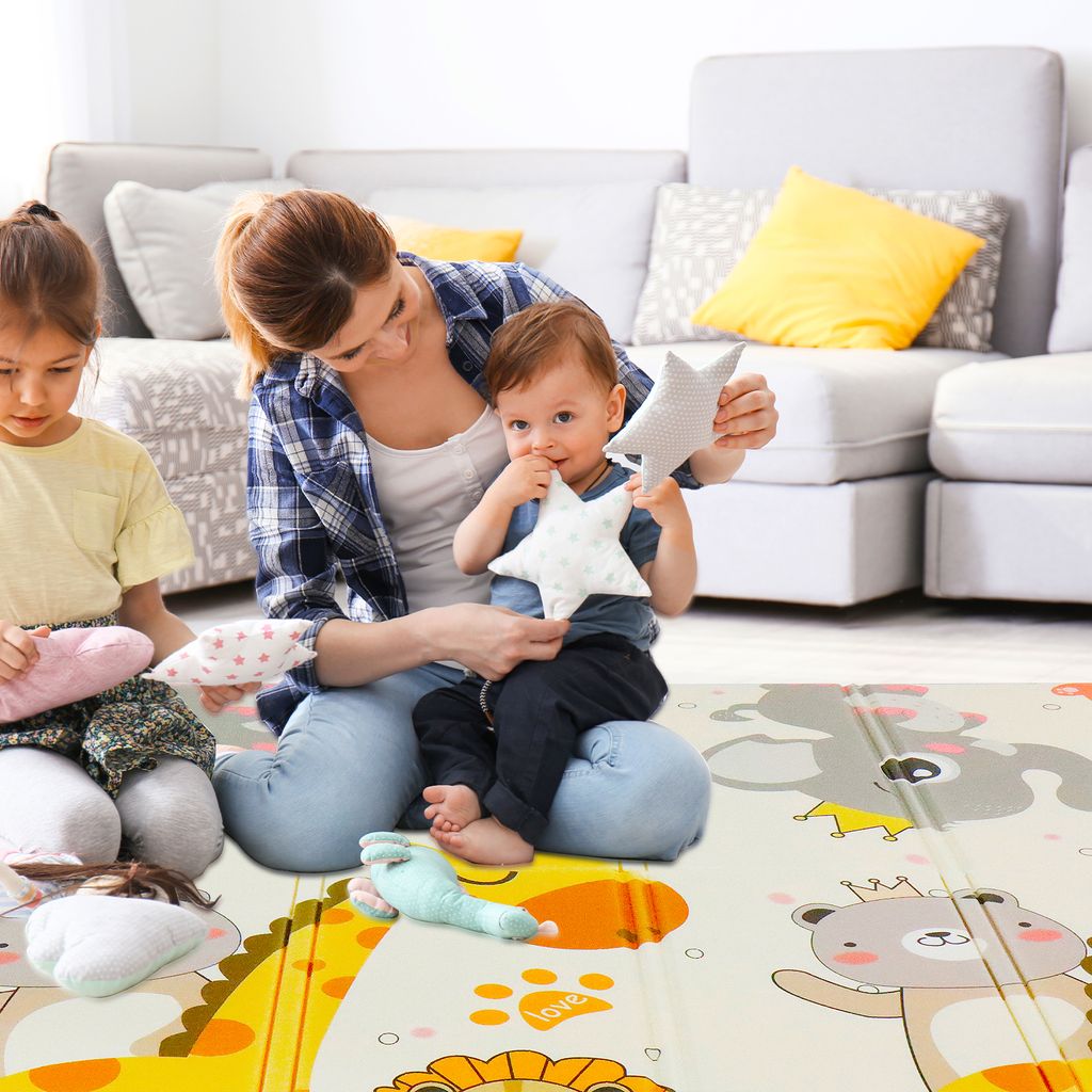 Praktisch für Eltern: Die Matte wiegt nur 1 kg, ist leicht faltbar und maschinenwaschbar bei 30°C. Perfekt für unterwegs, zu Oma oder für Picknicks im Garten. Ob als Laufstall-Unterlage, Krabbeldecke oder Spielzone - dieses Multitalent wird zum Lieblingsstück deines Babys. Ein ideales Geschenk zur Geburt!