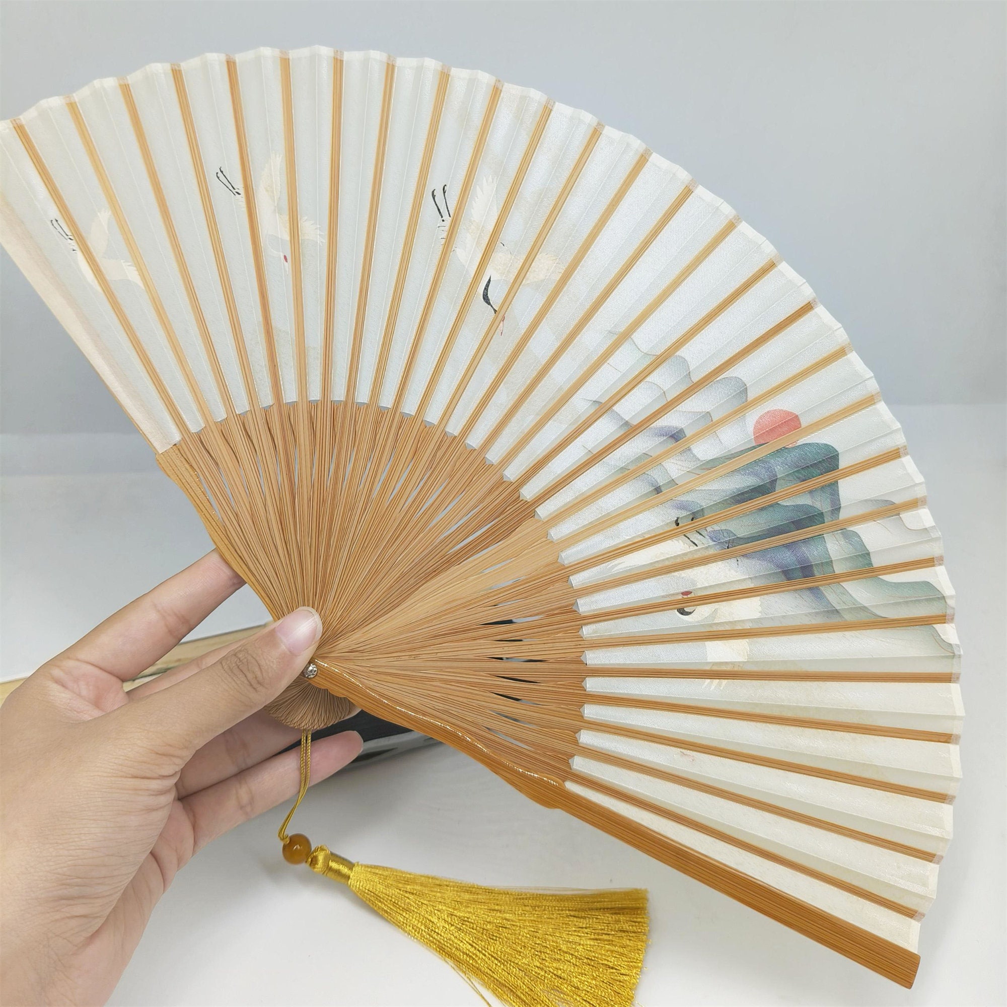 Dieser Fächer ist ja mal richtig edel! In dunkelgrün mit weißen Kranichen und Wolken - total traditionell und schön. Zusammengeklappt ist er nur 21 cm lang, passt also in jede Handtasche. Aufgeklappt dann stolze 40 cm Breite für angenehme Kühlung. Aus simulierte Seide und Bambusstreifen - also natürlich und umweltfreundlich. Perfekt für heiße Sommertage, aber auch super als Deko oder für Fotoshootings. Egal ob für Cosplay, Hochzeiten, Partys oder einfach nur stylisch aussehen - mit diesem Fächer machst du immer eine gute Figur! Die Quasten sind ein hübscher Extra-Detail. Einfach ausklappen und sich cool fächeln - oder als Wanddekoration nutzen. Richtig vielseitig!