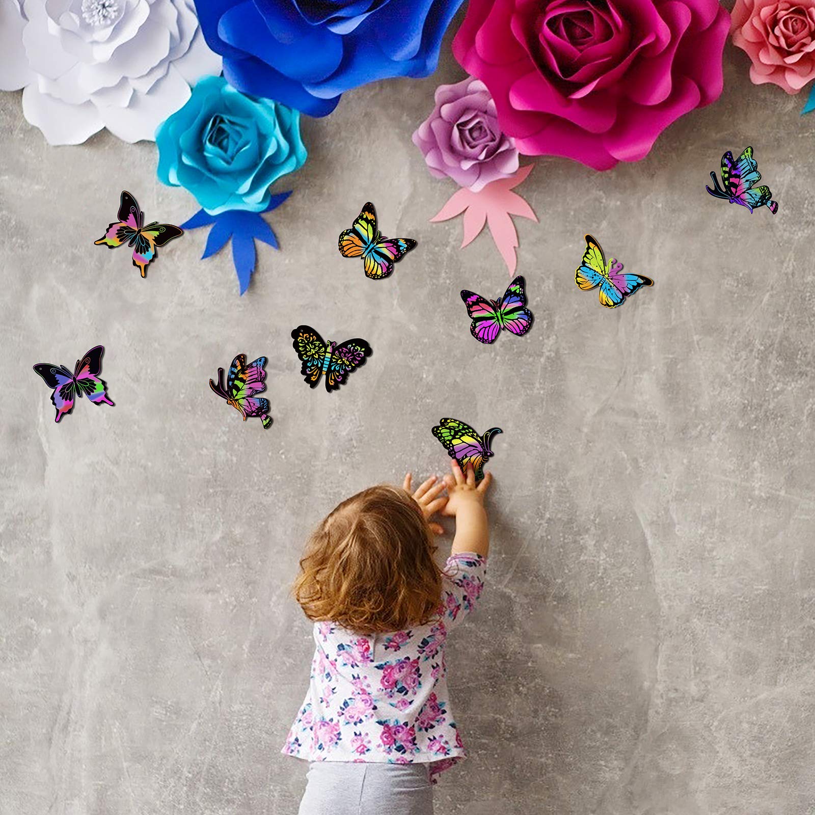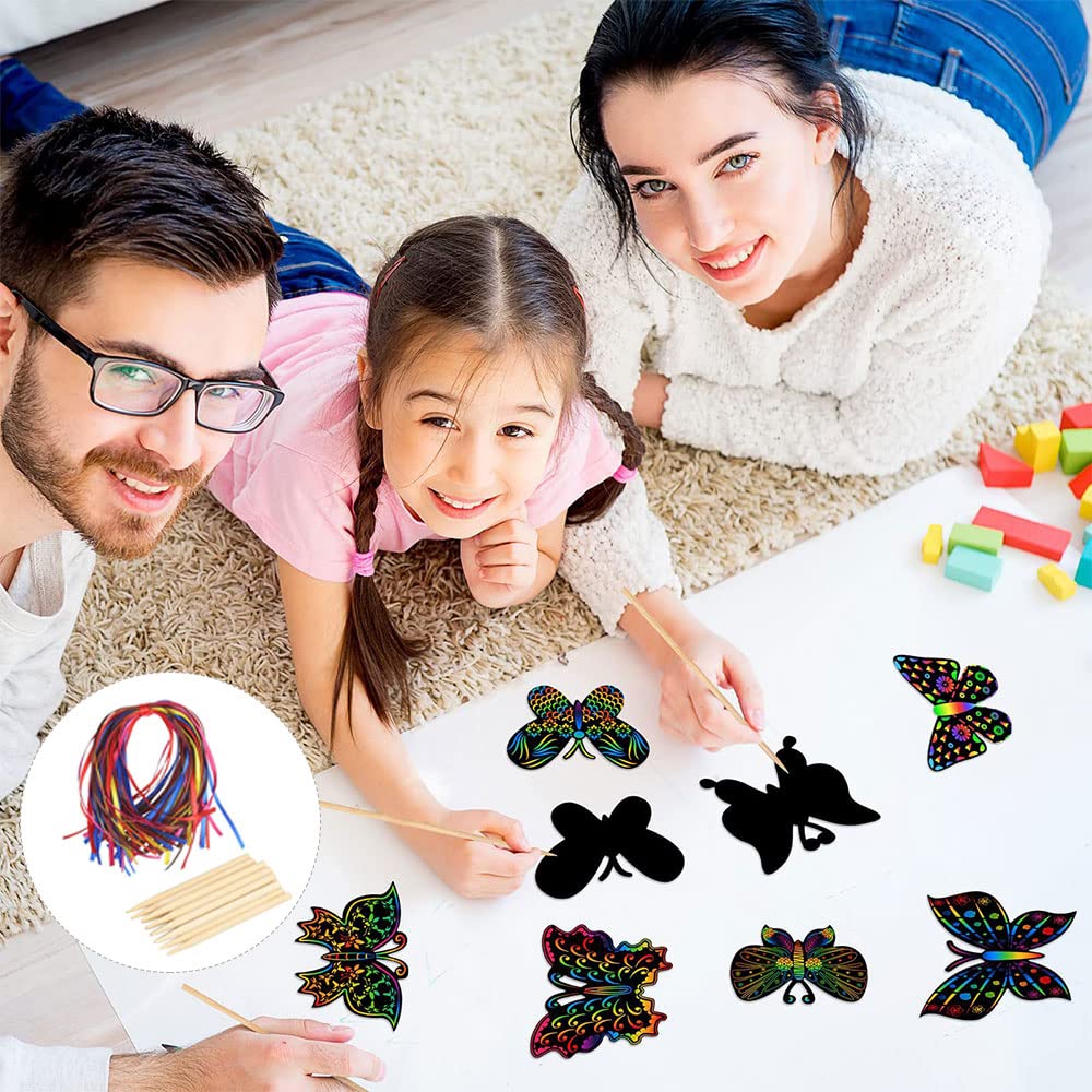 • 48 Stück Kratzbilder Schmetterlinge Set - DIY Bastelset Für Kinder Mit Stiften