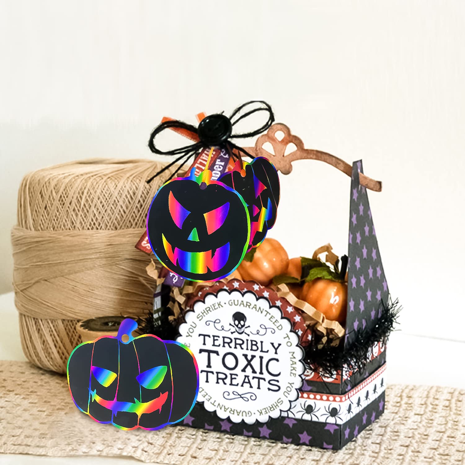 Mit den 48 bunten Bändern können die fertigen Kunstwerke überall aufgehängt werden. Perfekt für Halloween-Dekoration im Kinderzimmer oder für die Party.