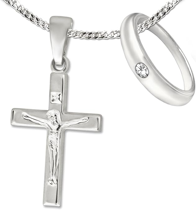 Wow, was für ein beeindruckendes Kreuz! Mit 41mm Breite und 53mm Gesamtlänge ist es ein echter Hingucker. Aus 925er Sterling Silber gefertigt, wiegt es stolze 8,3 Gramm und hat eine wunderschöne glänzende Oberfläche.\\n\\nDas schlichte, gerade Design ist zeitlos und passt super zu Herrenschmuck. Die große Schlaufe (7x3mm) nimmt auch dickere Ketten auf. Besonders detailreich: Die Jesusfigur ist figürlich ausgearbeitet und gibt dem Kreuz eine besondere Tiefe.\\n\\nGeliefert wird es im hochwertigen CLEVER SCHMUCK-Etui - perfekt als Geschenk zur Taufe, Kommunion oder für andere besondere Anlässe. Mit Echtheitsstempel und in mattschwarzer Rückseite.\\n\\nEin Schmuckstück, das nicht nur gut aussieht, sondern auch eine tiefe Bedeutung trägt. Ein Begleiter fürs Leben!