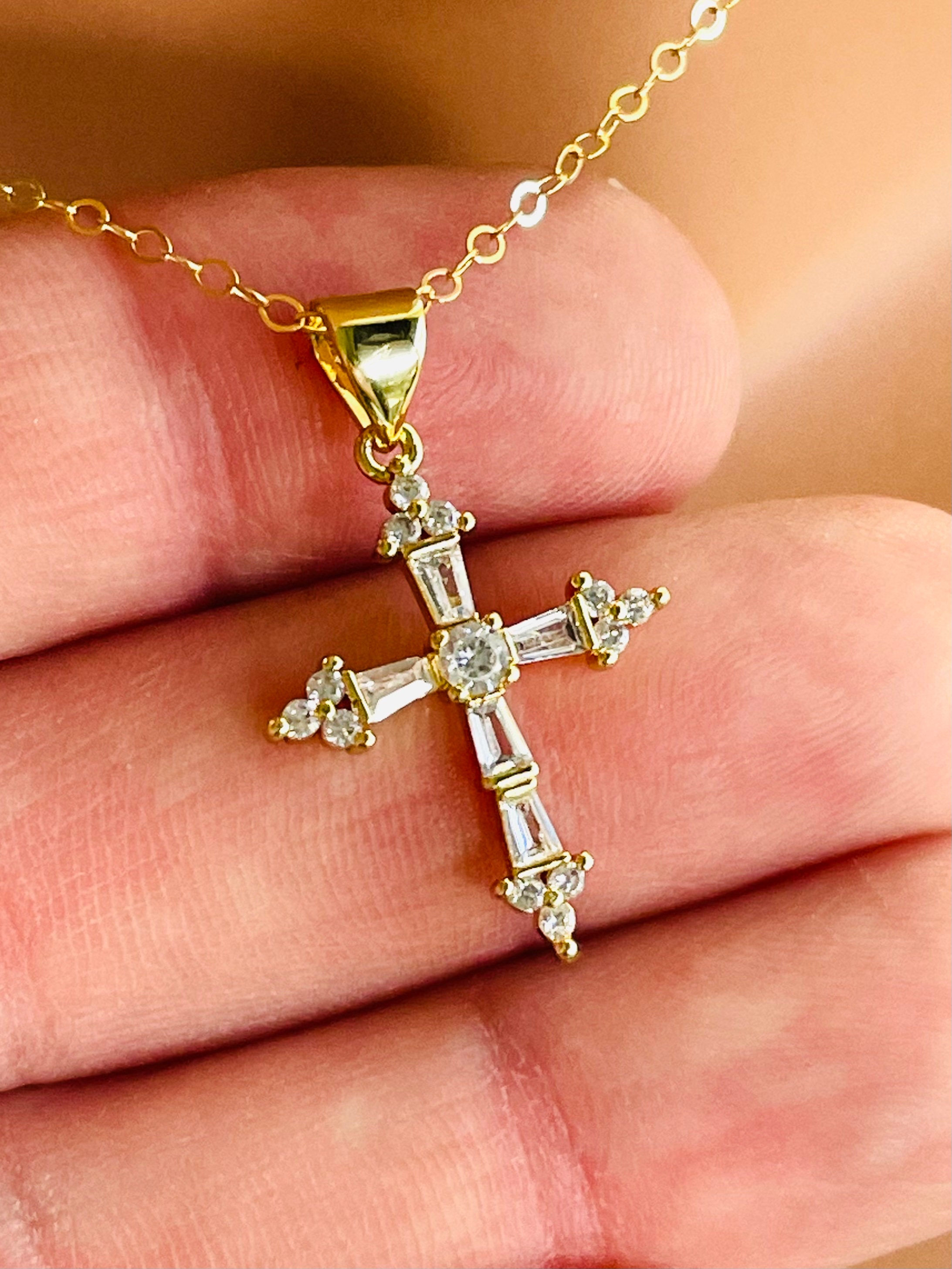 Elegante Kreuzkette für den perfekten Alltagslook! Diese zierliche Halskette von BodyBonita verbindet Vintage-Charme mit moderner Schlichtheit. Aus hochwertigem Kupfer mit 16-Karat Vergoldung, ideal für empfindliche Haut. Der zarte Kreuz-Anhänger (15x22mm) liegt dekorativ auf der 16 Zoll langen Kette. Mit 2 Zoll Verlängerung und funkelndem CZ-Stein auf der Verlängerung für individuelle Längen. Der robuste Karabinerverschluss aus 925er Silber garantiert sicheren Halt. Perfekt allein getragen oder kombiniert mit anderen Ketten für einen layered Look. Wasserdicht und langlebig - dein treuer Begleiter für jeden Tag. Wunderschön verpackt ein ideales Geschenk für Geburtstage, Feiertage oder einfach als Zeichen der Zuneigung. Ob für dich selbst oder als Überraschung für liebe Menschen - diese Kette bringt Freude!