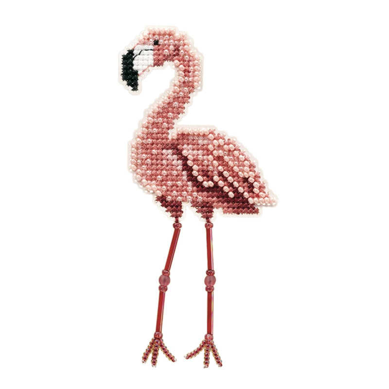 Kreuzstich-Fans, dieses Mill Hill Set ist einfach zauberhaft! Ein süßer Herbst-Flamingo mit bunten Glasperlen und Treasure-Steinchen - total detailverliebt!