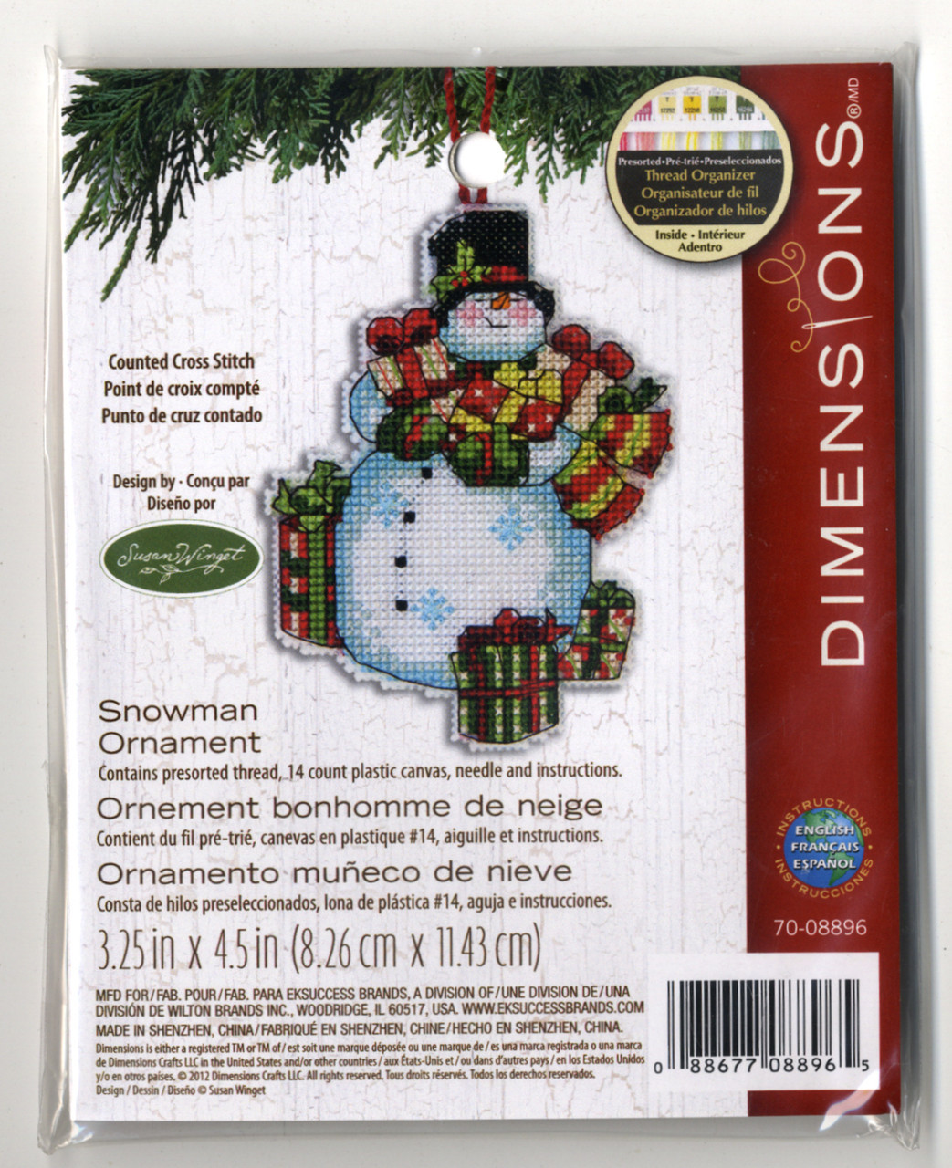 • Dimensions Kreuzstich Set Snowman Ornament - Weihnachtsbaum Schmuck Bastelset 8x11cm