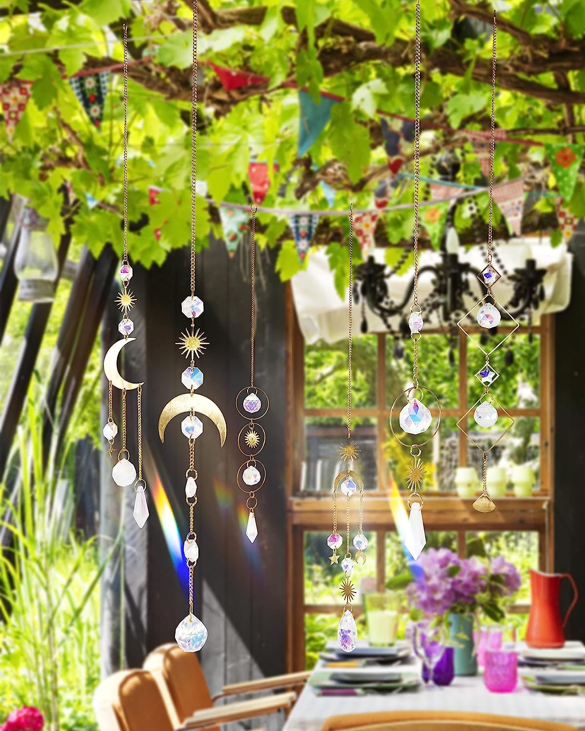 Qaestuan Sonnenfänger Kristall 45cm - Bunt, Mit Doppelspirale Für Garten & Fenster