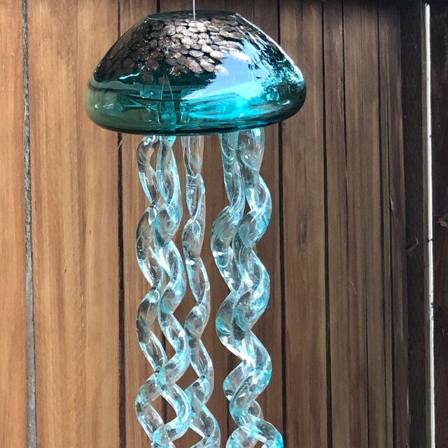 Dieses bezaubernde Quallen-Windspil bringt Magie in dein Zuhause! Handgefertigt aus echten Muscheln und funkelnden Kristallen schafft es wunderschöne Lichtreflexe, wenn sich die 18cm großen Quallen im Wind drehen. Perfekt für den Garten, Balkon, Terrasse oder als besondere Deko im Wohnzimmer nahe am Fenster. Ob bei Hochzeiten, Gartenpartys oder einfach als täglicher Blickfang - dieses einzigartige Stück sorgt für staunende Blicke bei deinen Gästen. Die natürlichen Materialien und die liebevolle Handarbeit machen jedes Windspiel zu einem Unikat. Leicht aber stabil übersteht es auch windigere Tage im Freien. Einfach aufhängen und den sanften Klang der aneinander scheppernden Muscheln genießen während die Kristalle in der Sonne glitzern. Farbabweichungen sind möglich - das macht jedes Stück noch einzigartiger!