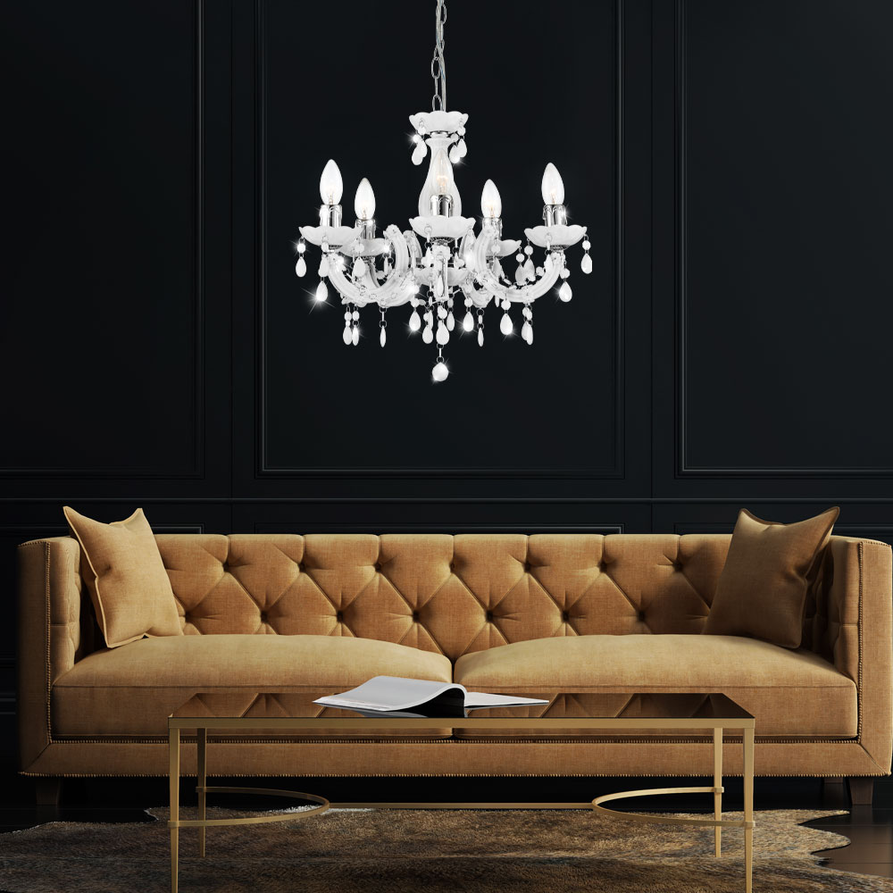 Wow, was für ein toller Kronleuchter! In edlem Gold mit funkelnden Acrylkristallen, die das Licht wunderschön brechen und tolle Lichtspiele an die Wände werfen. Mit 5 E14-Fassungen (bis 40W) beleuchtet er deinen Raum perfekt. Die Höhe ist verstellbar bis 150cm - passt also in fast jede Decke. Ob über dem Esstisch, im Wohnzimmer oder im Flur - dieser Leuchter macht überall eine gute Figur! Einfach zu installieren und inklusive Pflegetuch für die Kristalle. Zeitlose Eleganz, die nie aus der Mode kommt. Mach dein Zuhause gemütlich und stylisch - dieser Kronleuchter ist der absolute Hingucker!
