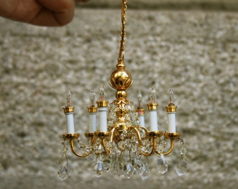 Verleihe deinem Puppenhaus royalen Glanz! Dieser goldene Miniatur-Kronleuchter von Hemobllo ist das i-Tüpfelchen für jede Modelllandschaft. \\n\\nGröße: Klein - perfekt proportioniert für Puppenhäuser und Dioramen. Das elegante Design passt zu den meisten Einrichtungsstilen. \\n\\nHochwertige Verarbeitung: \\n- Feine Details \\n- Stabile Konstruktion \\n- Goldene Oberfläche \\n\\nEinfach zu installieren - wird zur echten Augenweide in deinem Miniatur-Reich! \\n\\nIdeal für: \\n- Puppenhäuser \\n- Modellbau-Projekte \\n- Dioramen \\n- Sammlungen \\n- Sandtisch-Dekoration \\n\\nAuch ein tolles Geschenk für Modellbau-Fans und Puppenhaus-Liebhaber! \\n\\nVerwandle dein Miniatur-Projekt in ein kleines Kunstwerk!