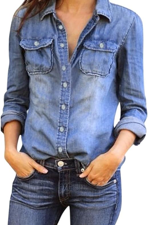 • Kswlwccpp Jeanshemd Damen Hellblau - Kurzarm Denim Bluse Oversize Mit Brusttaschen